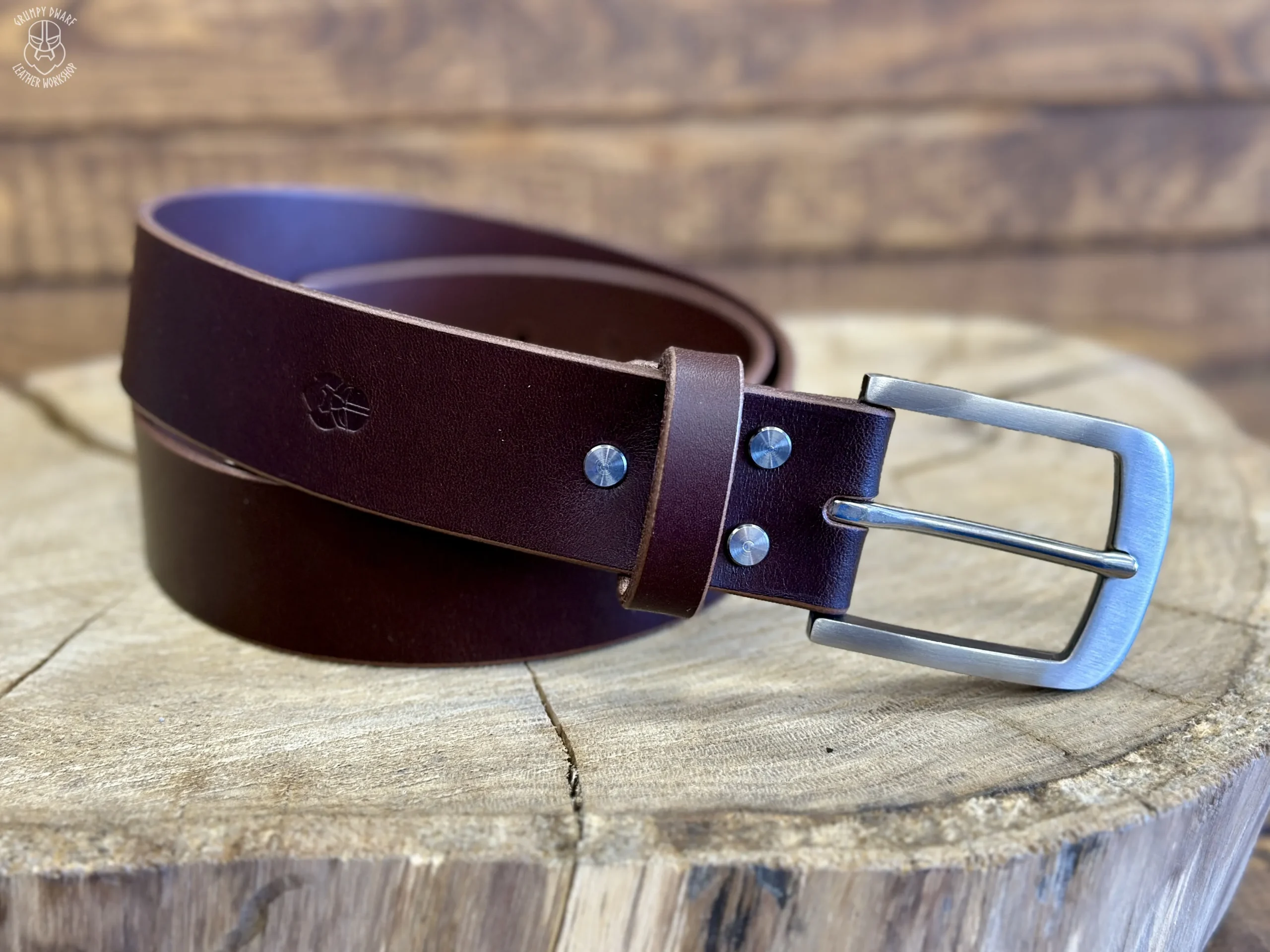 Ręcznie wykonany męski pasek do spodni ze skóry juchtowej – Z WADAMI.