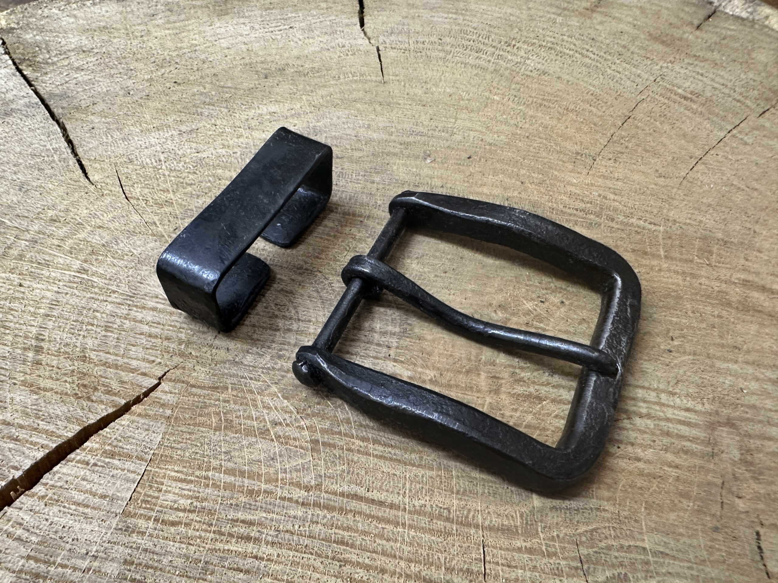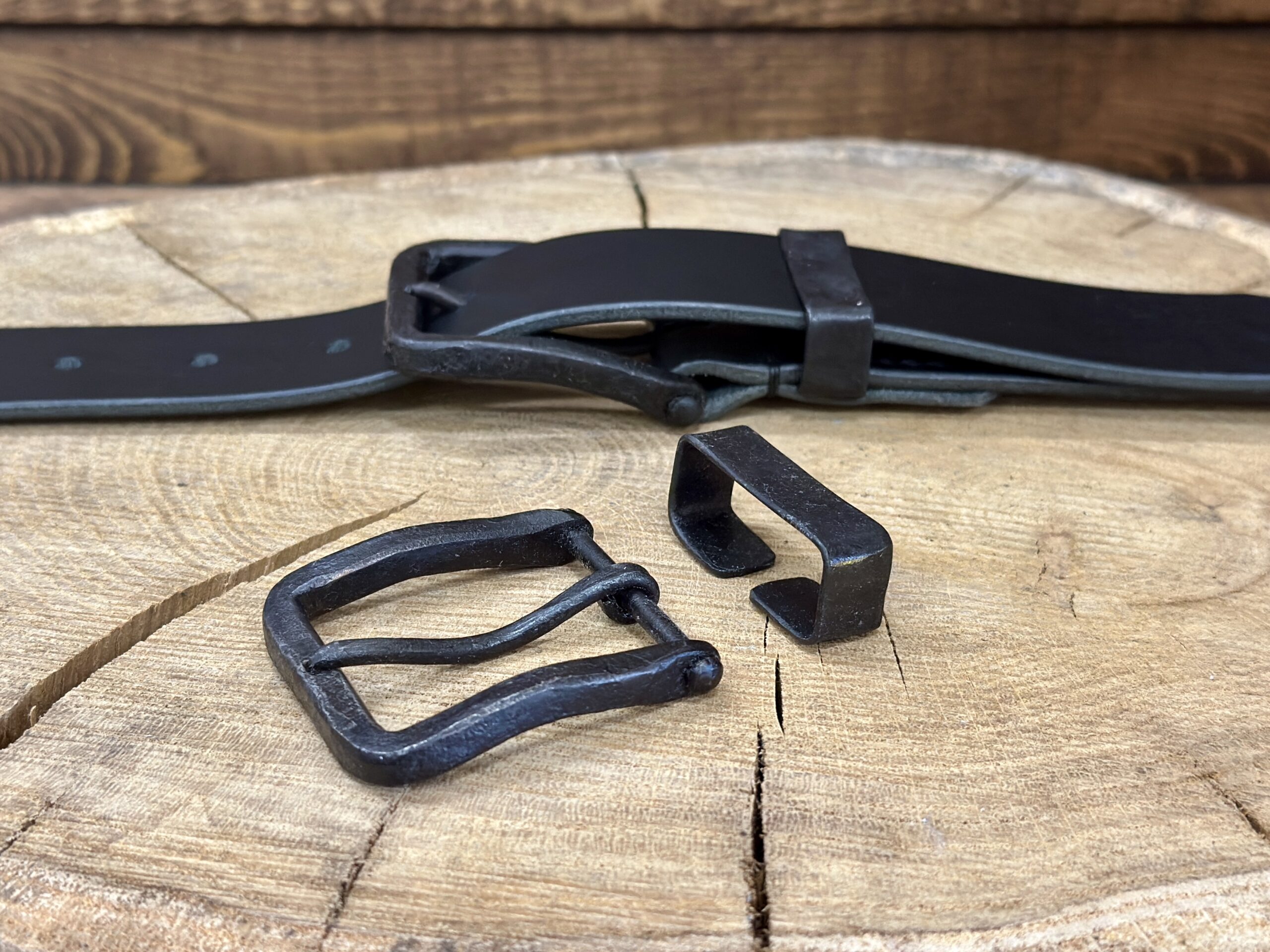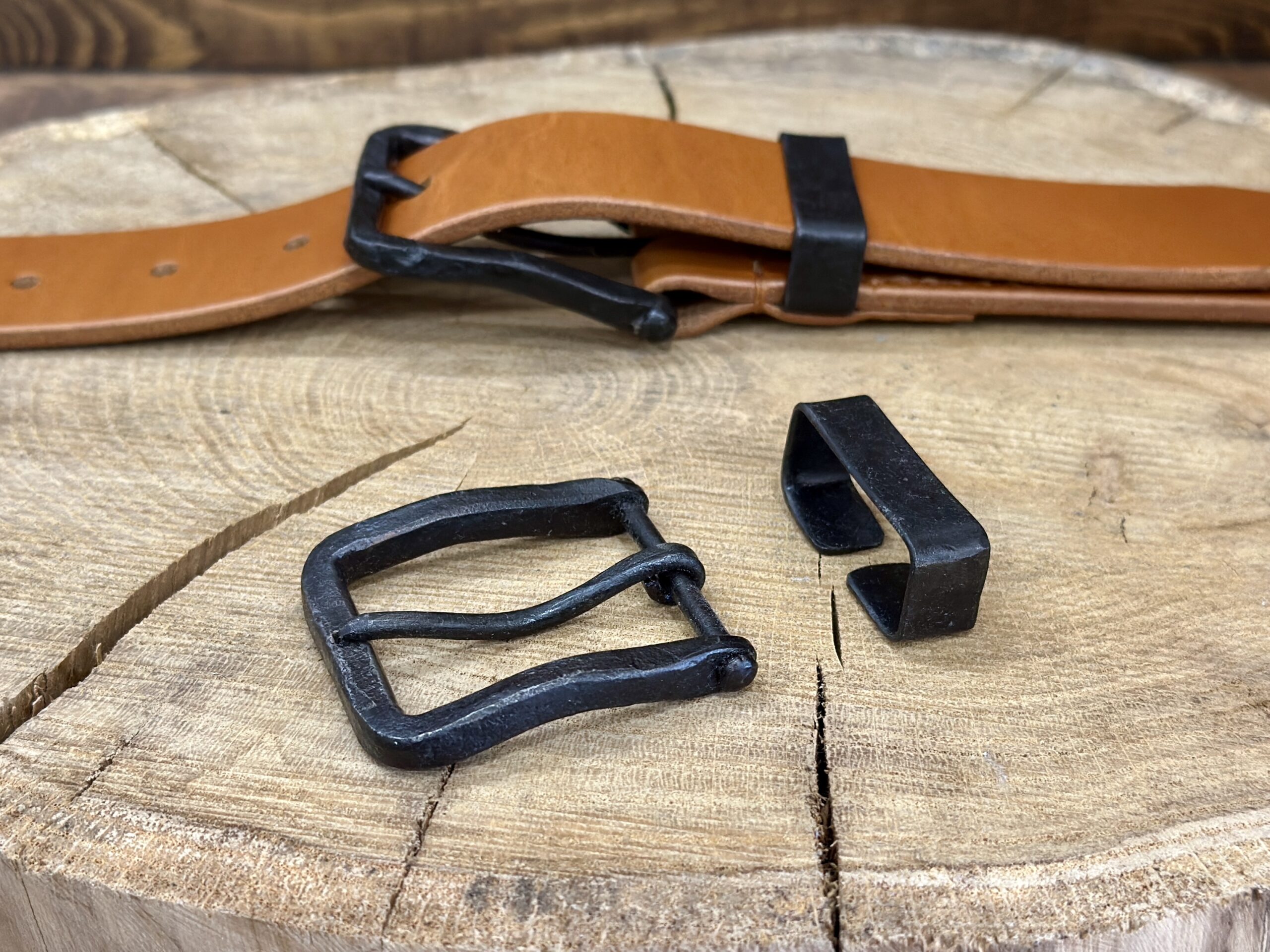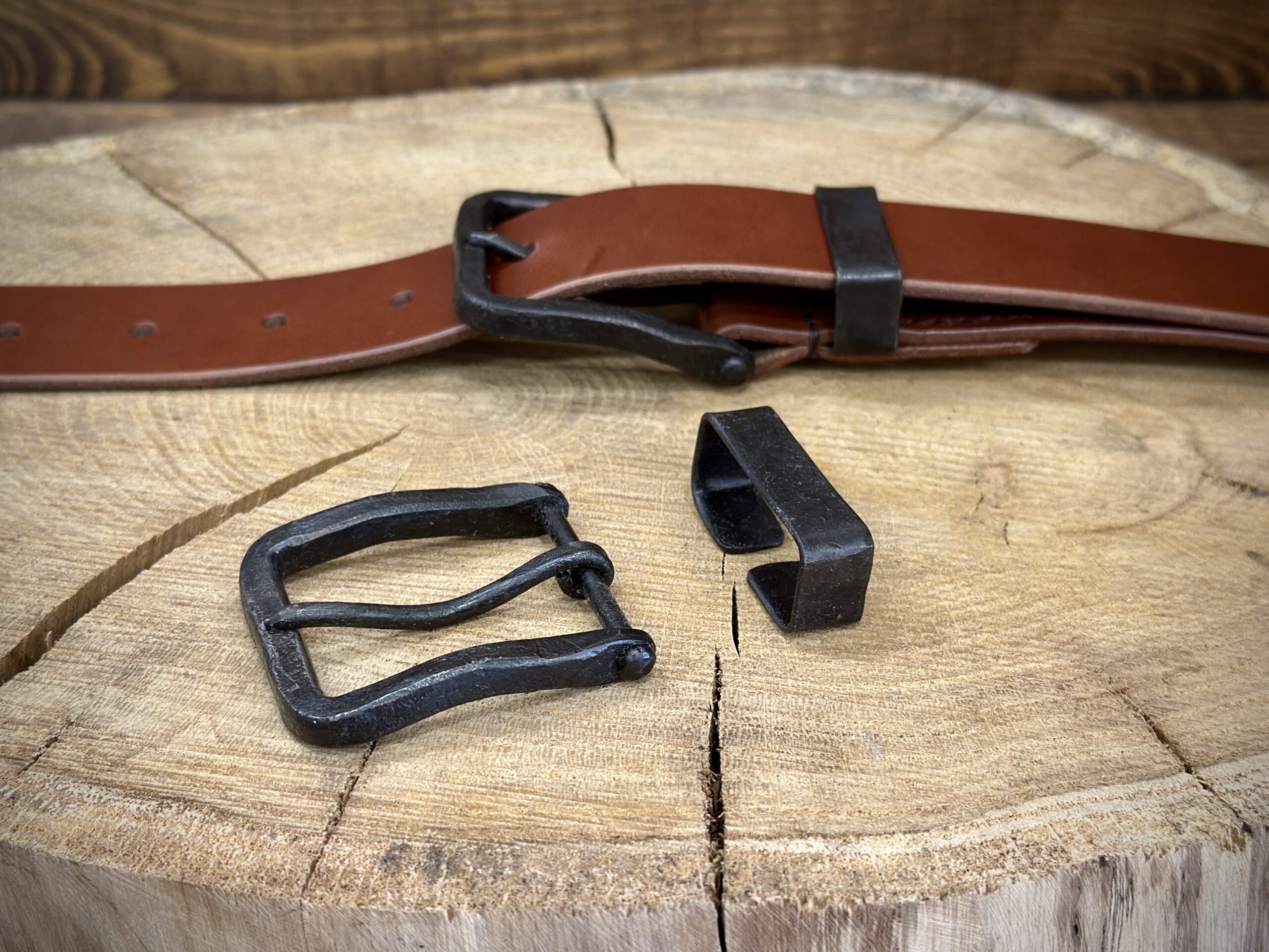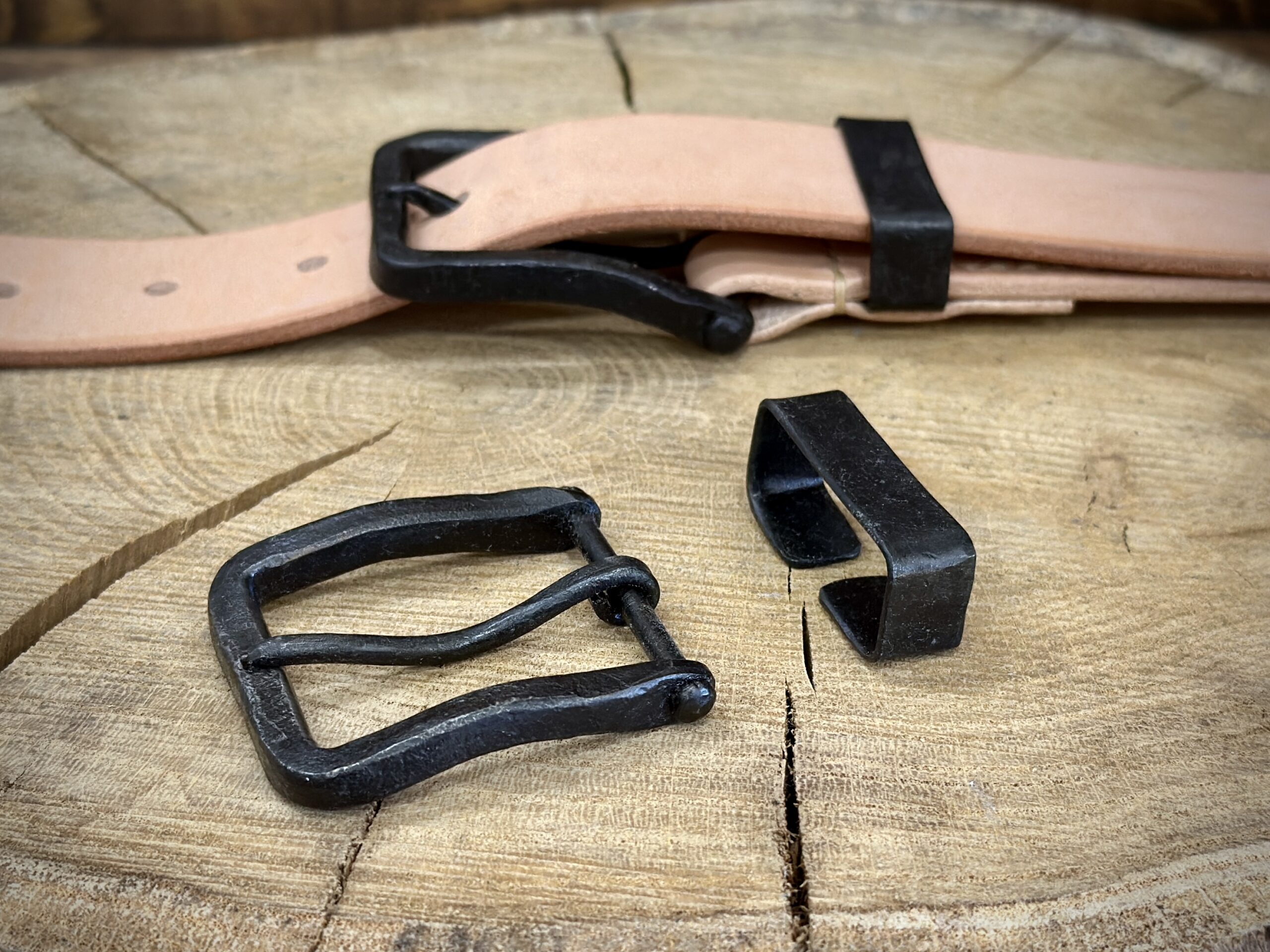 Ręcznie kuta sprzączką w komplecie z kutą szlufką.