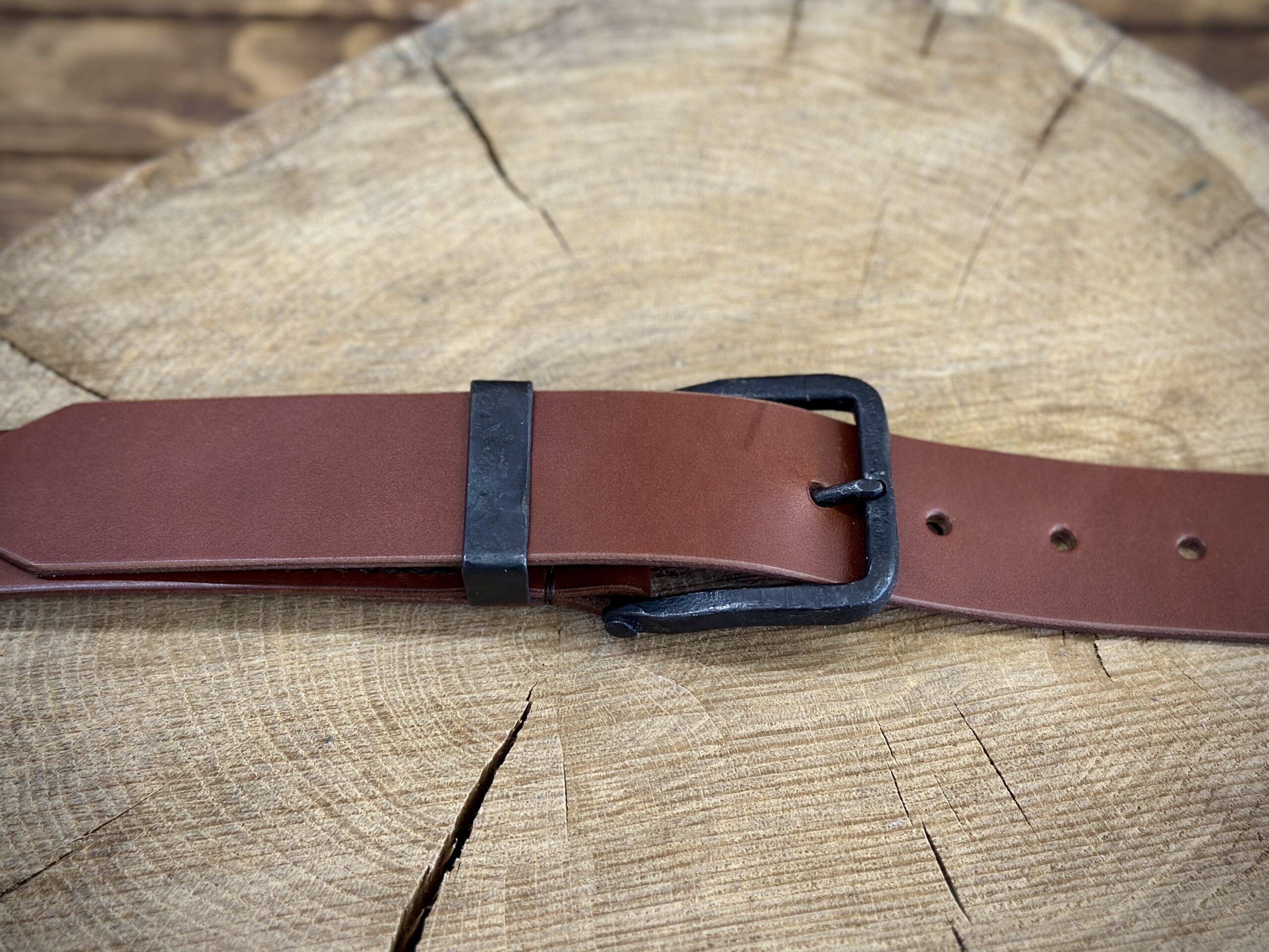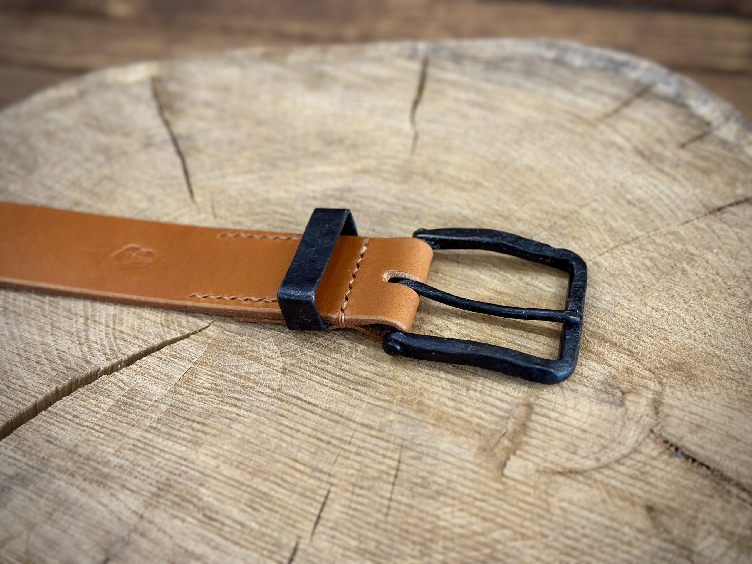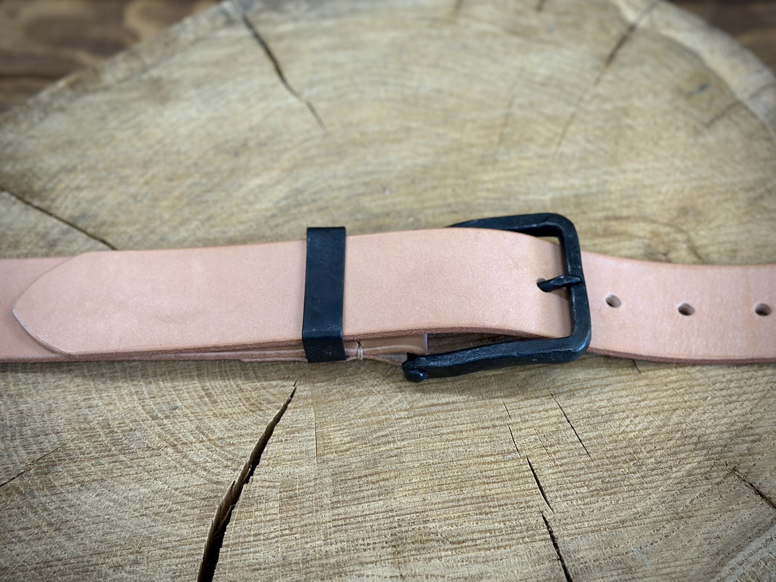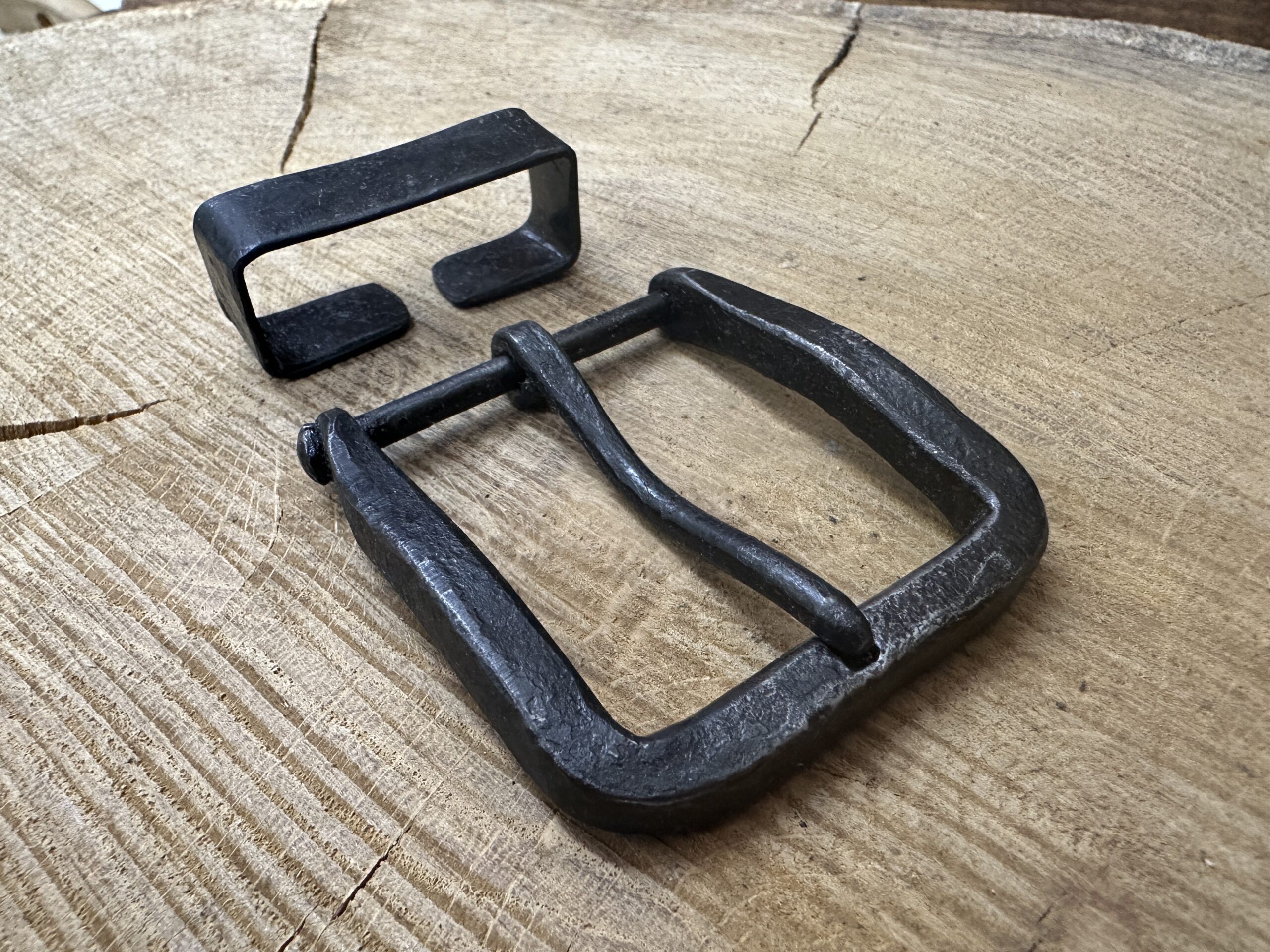 Ręcznie kuta sprzączką w komplecie z kutą szlufką.