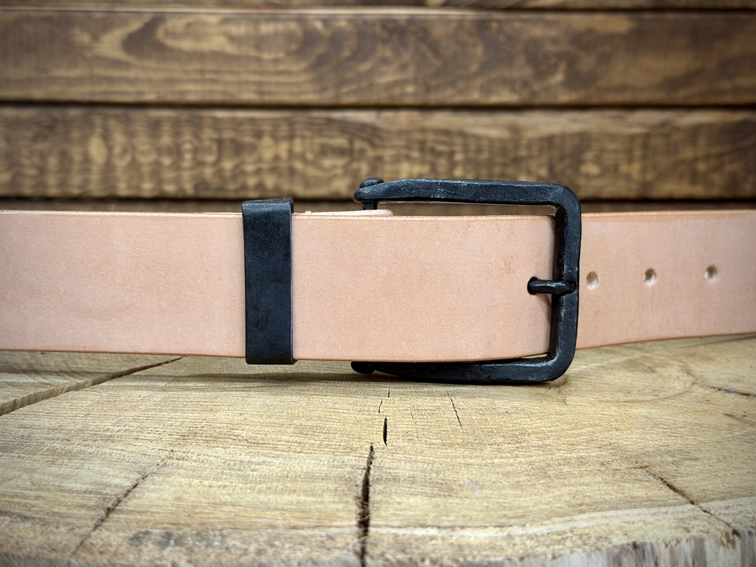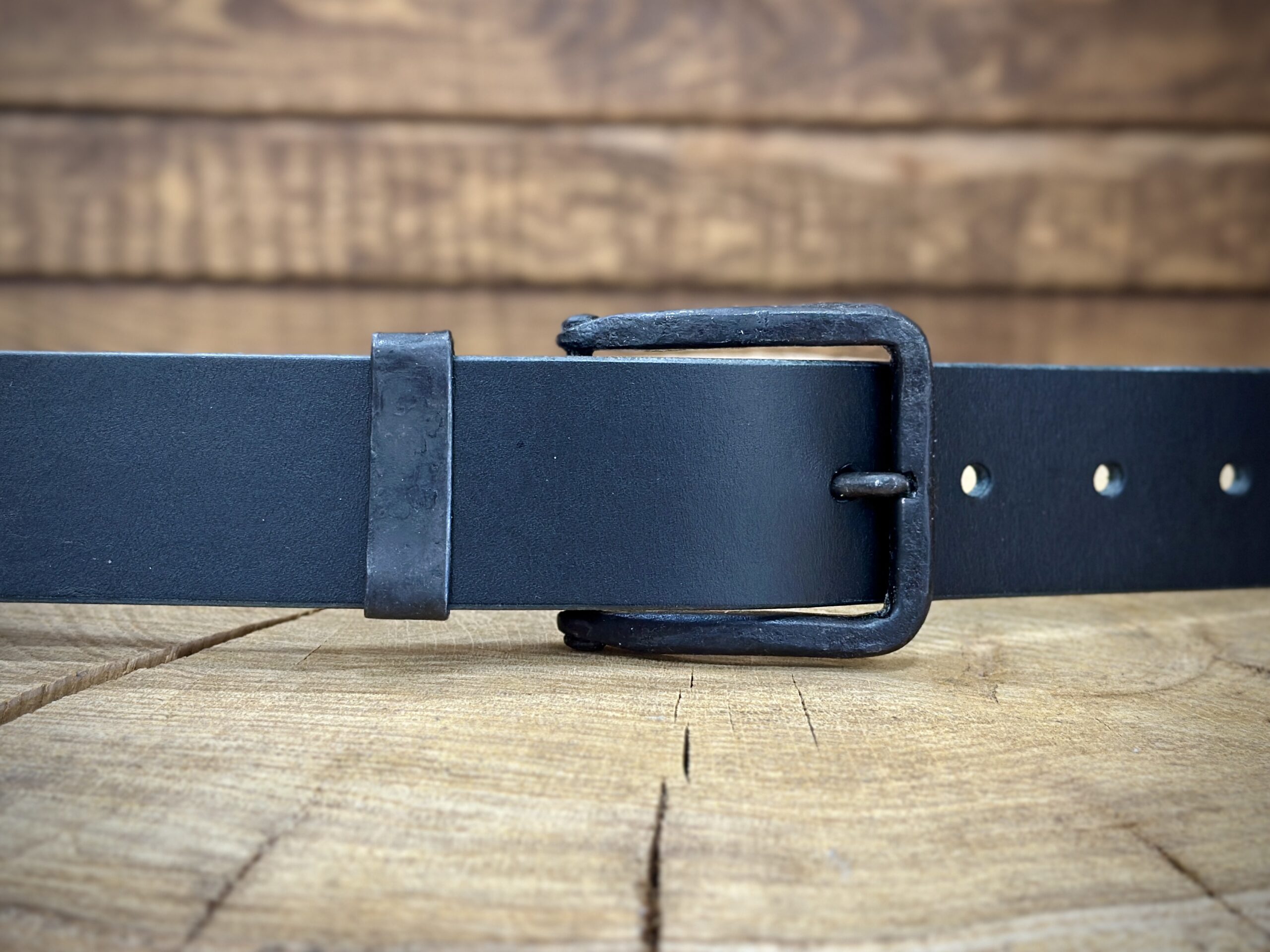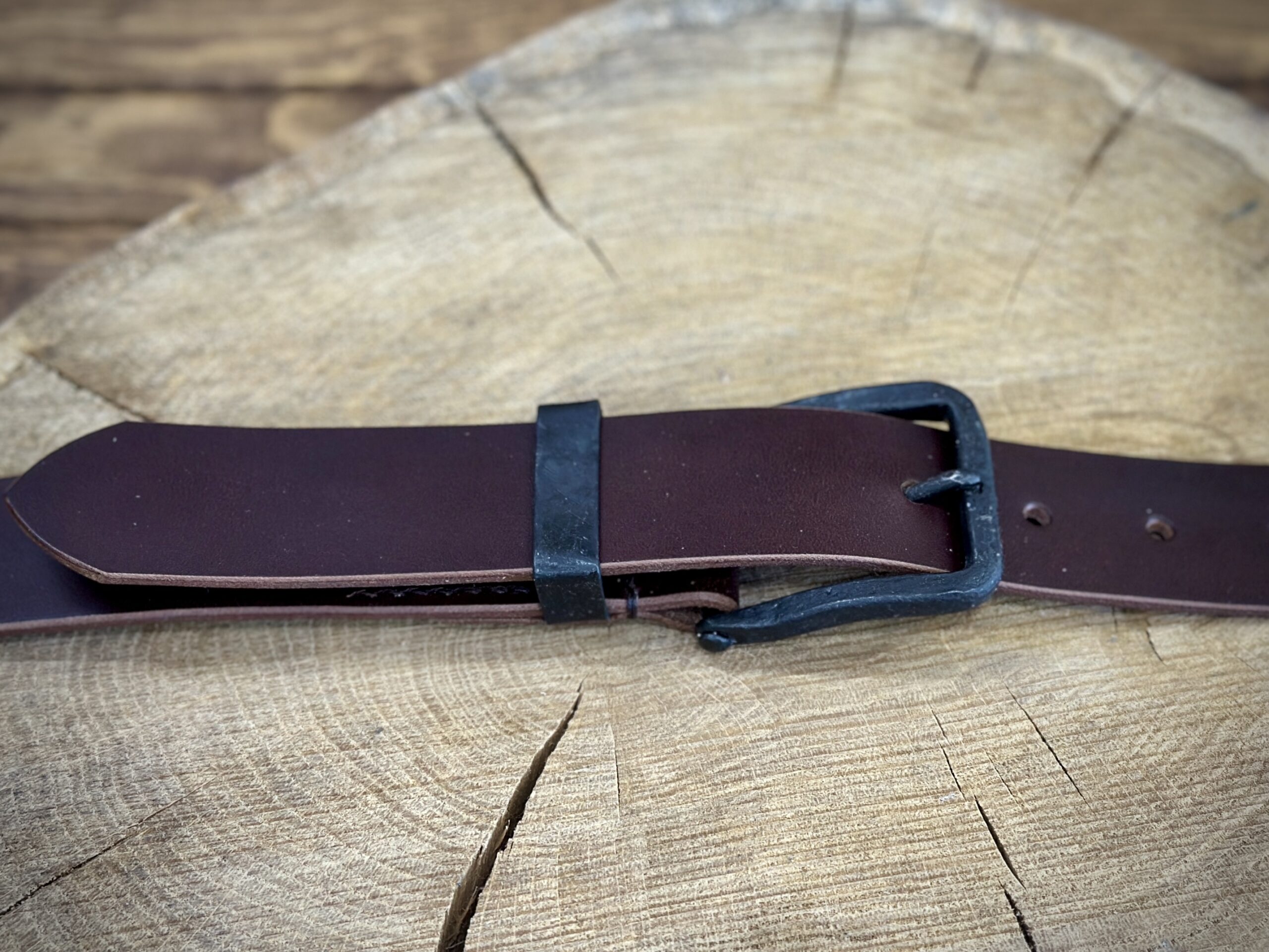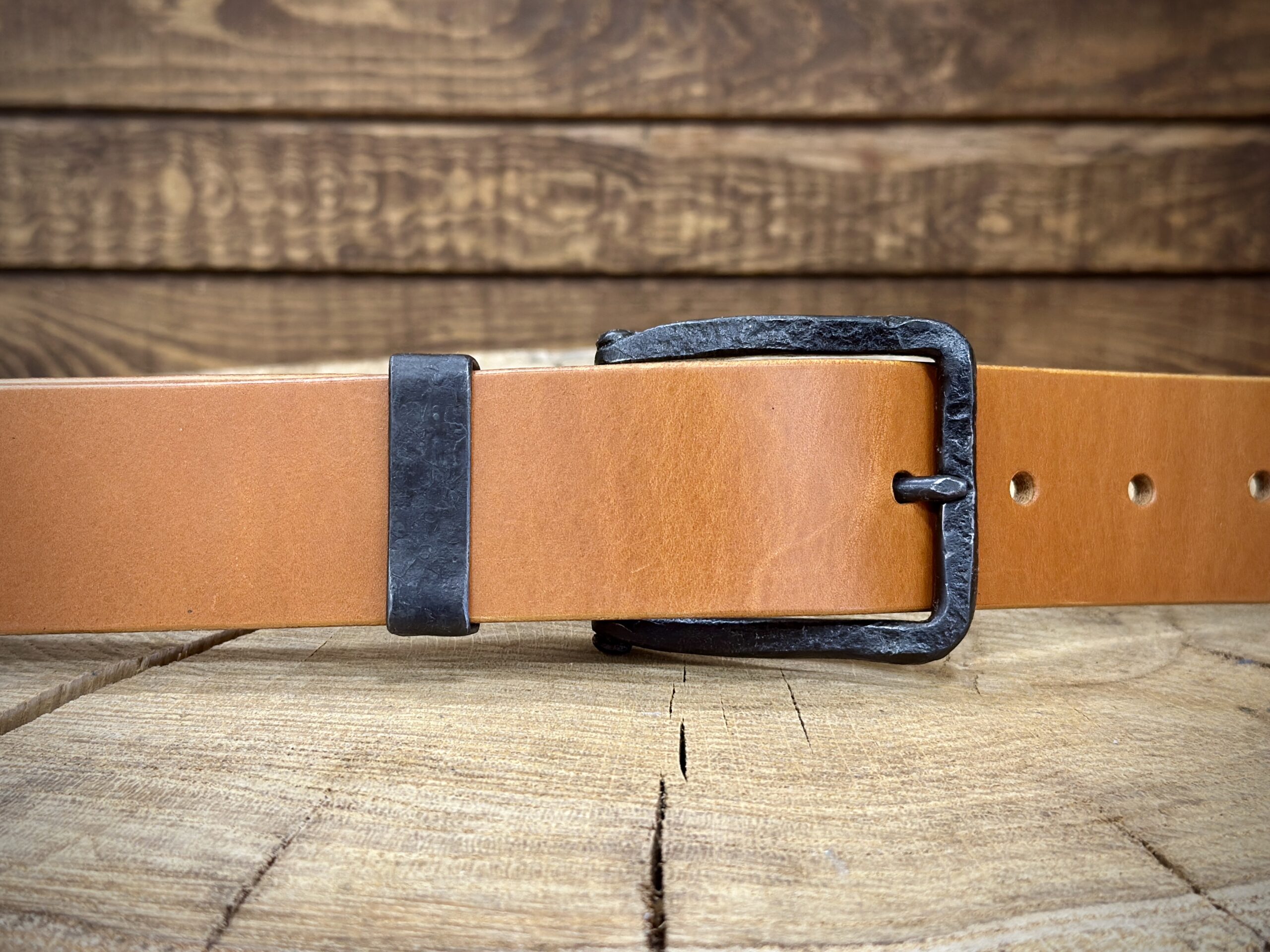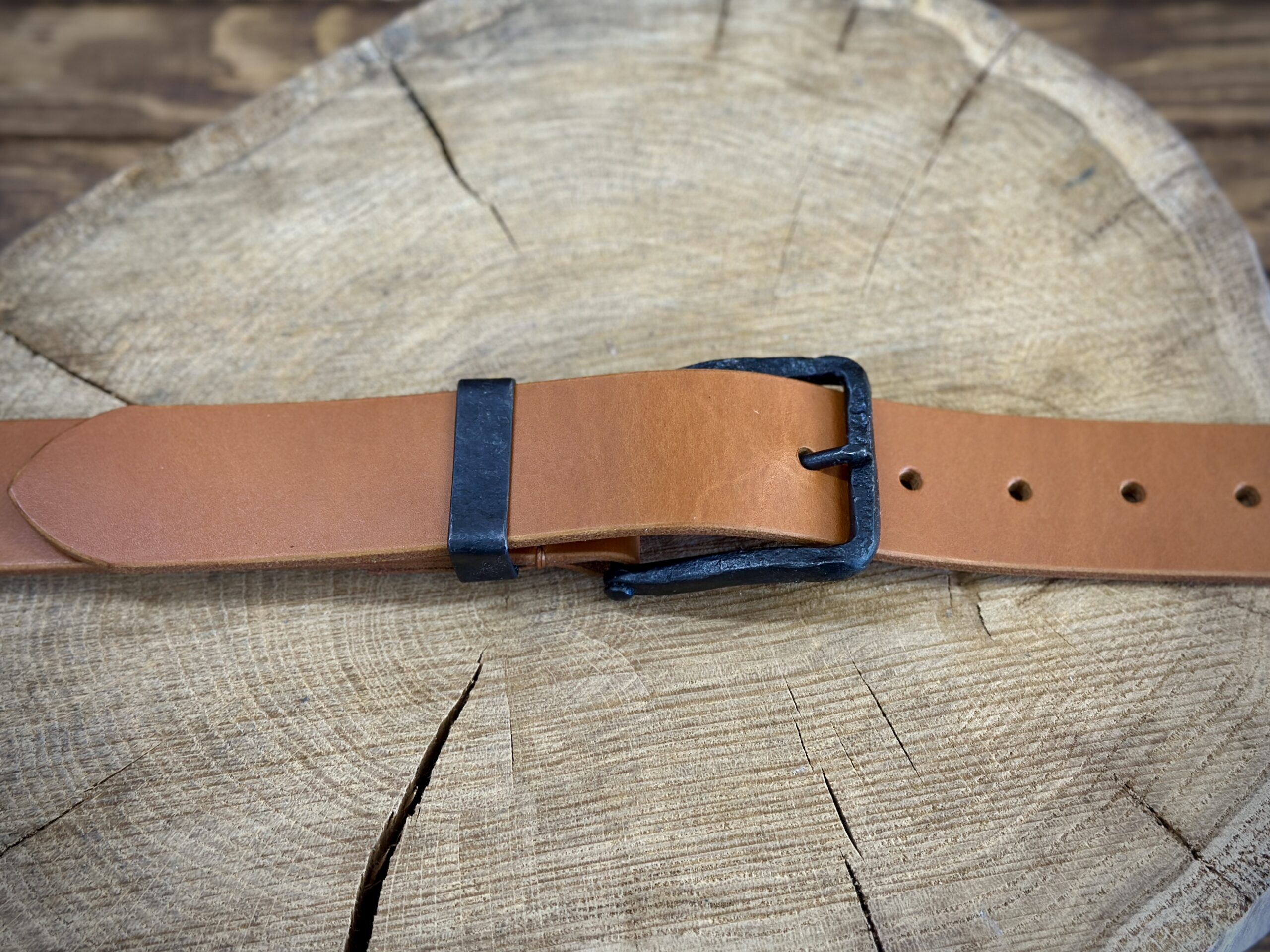 Ręcznie kuta sprzączką w komplecie z kutą szlufką.
