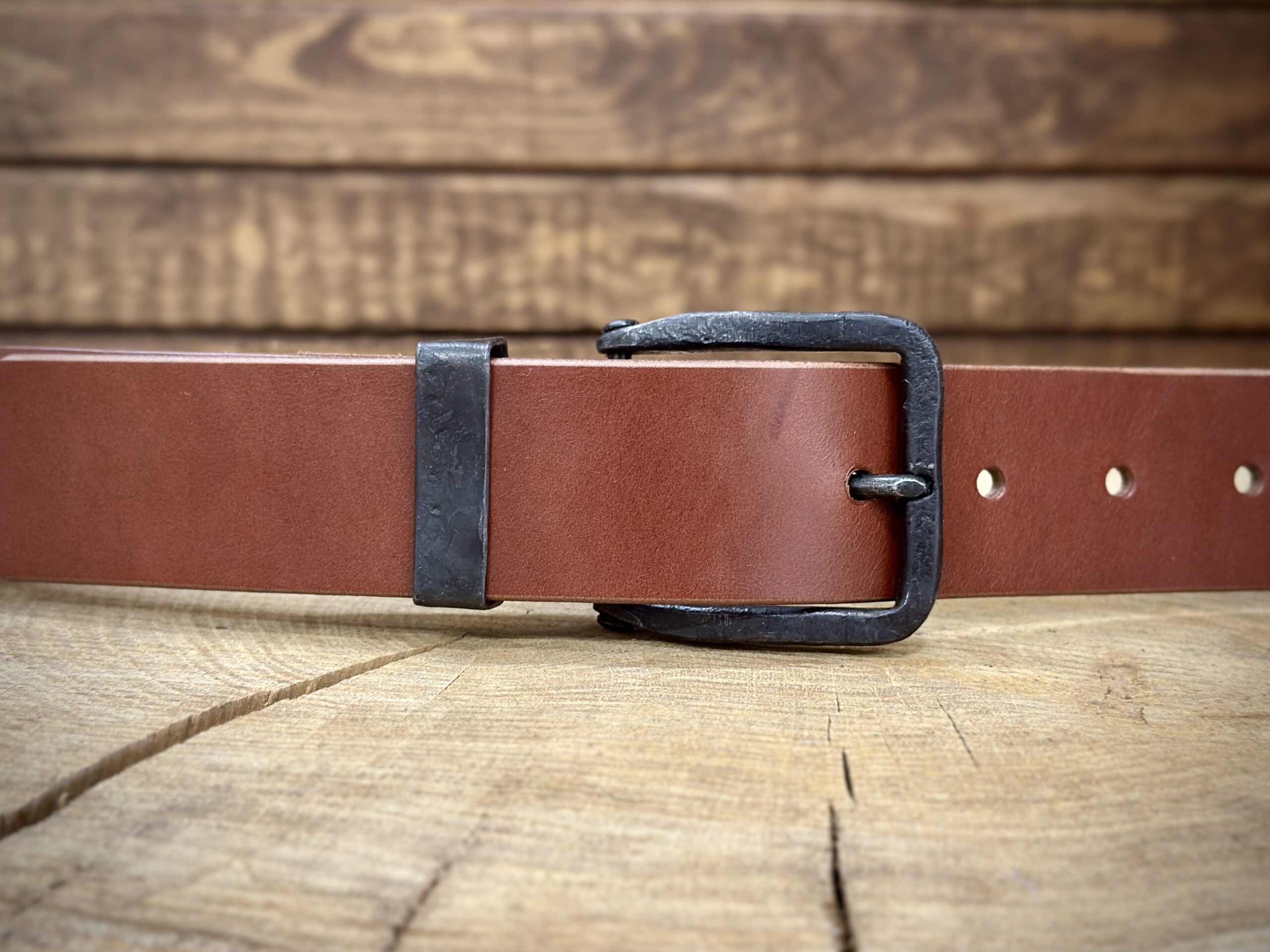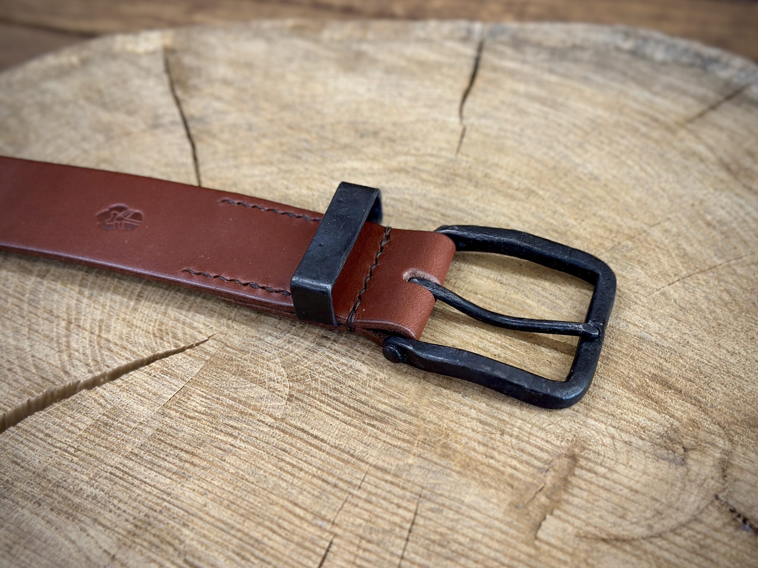 Męski pasek skórzany z kutą sprzączką 40mm "Hefajstos"