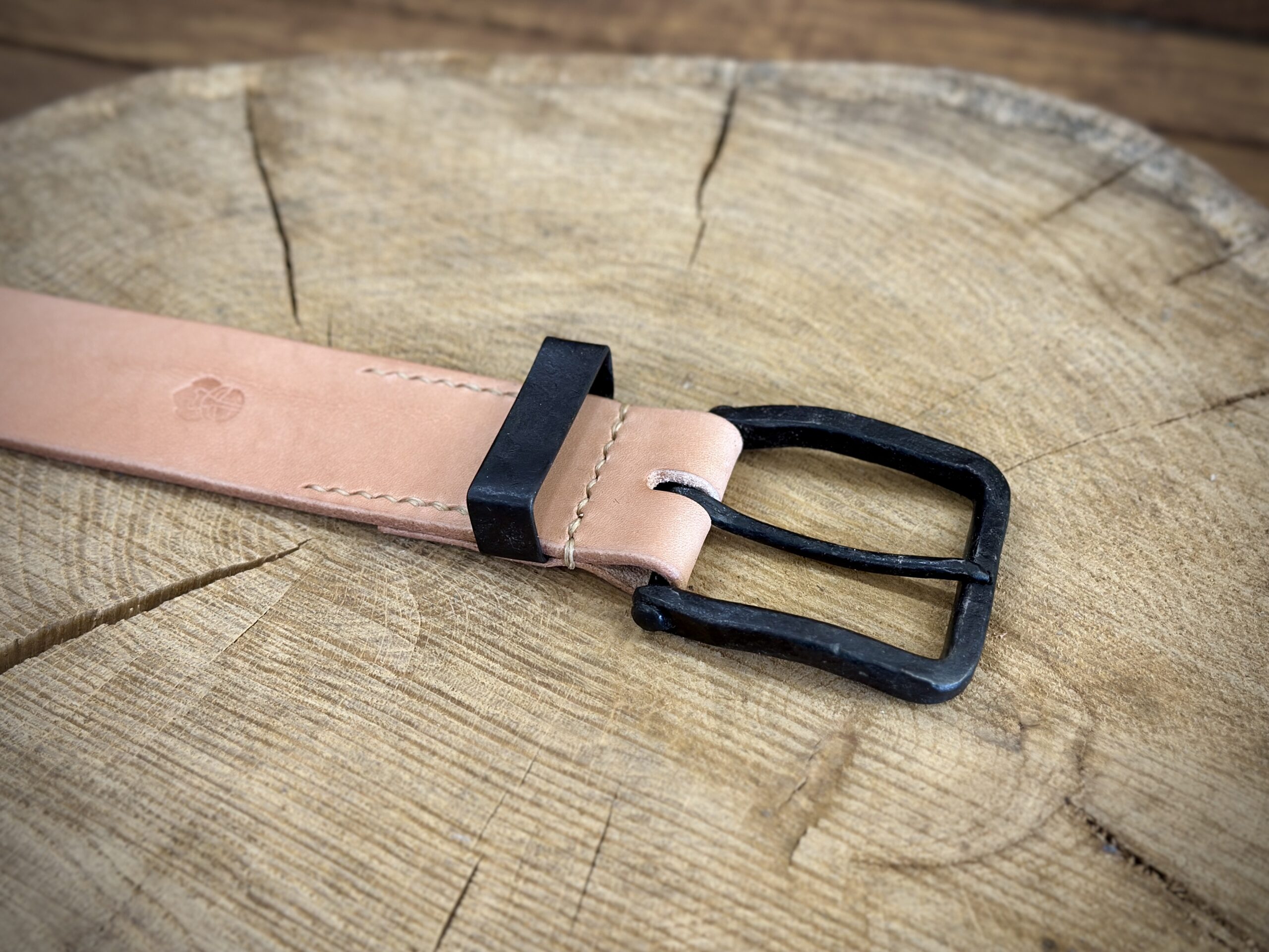Z dumą prezentuję pasek który został wykonany we współpracy z polskim kowalem Jerzym Kotkiem. Po miesiącach przygotowań i uderzeń młotem, paski szukają swoich pierwszych właścicieli. Sprzączki są jedyne w swoim rodzaju, nie jest to masowa produkcja bez serca, każda jest wyjątkowa. Każde uderzenie młotem w stworzyło niepowtarzalną historię która teraz może być twoja. Sprzączki wykonane są z wytrzymałej na obciążenia stali s235jrg2 która nie zawiedzie cię i nie pęknie bez ostrzeżenia.