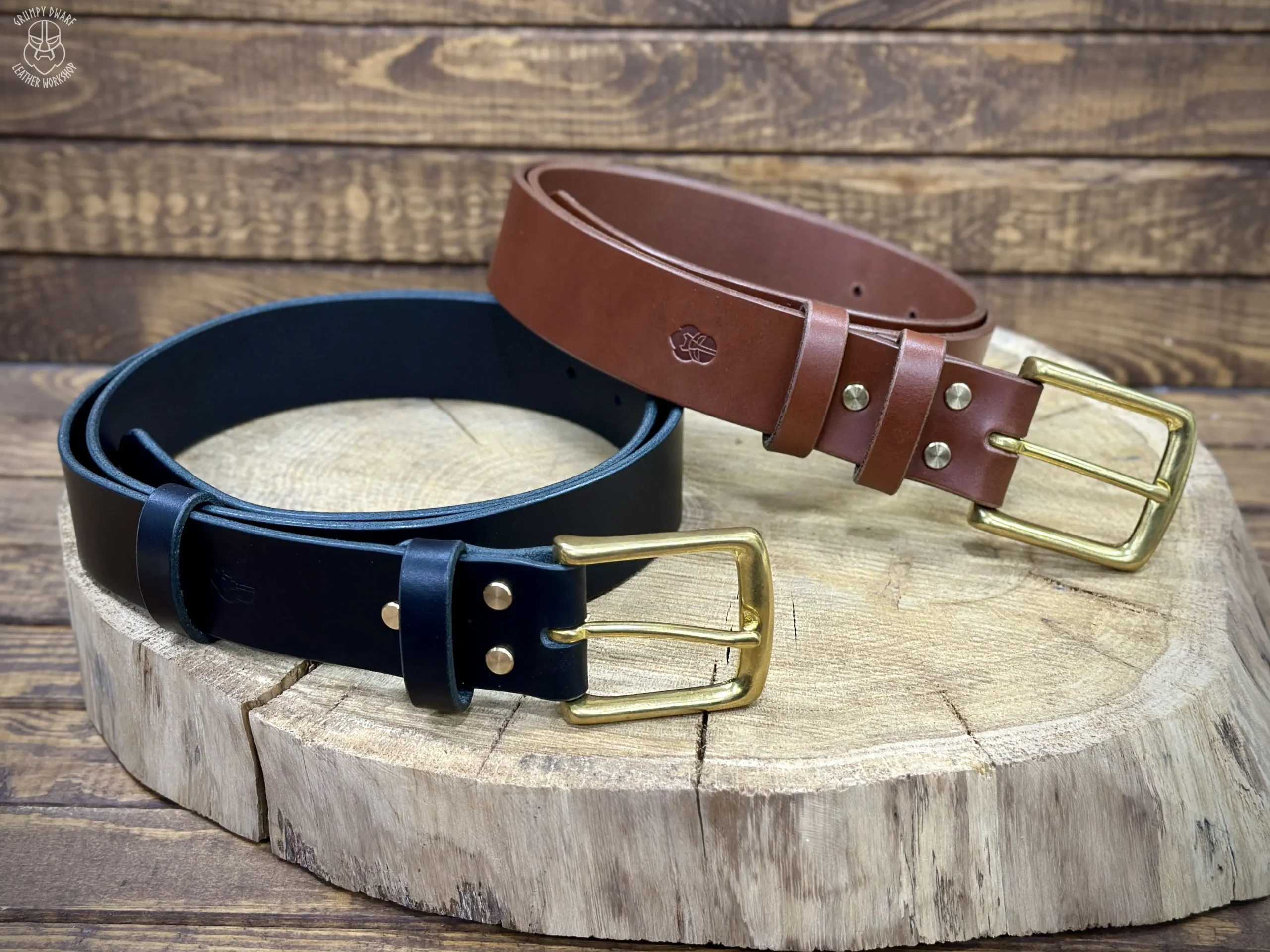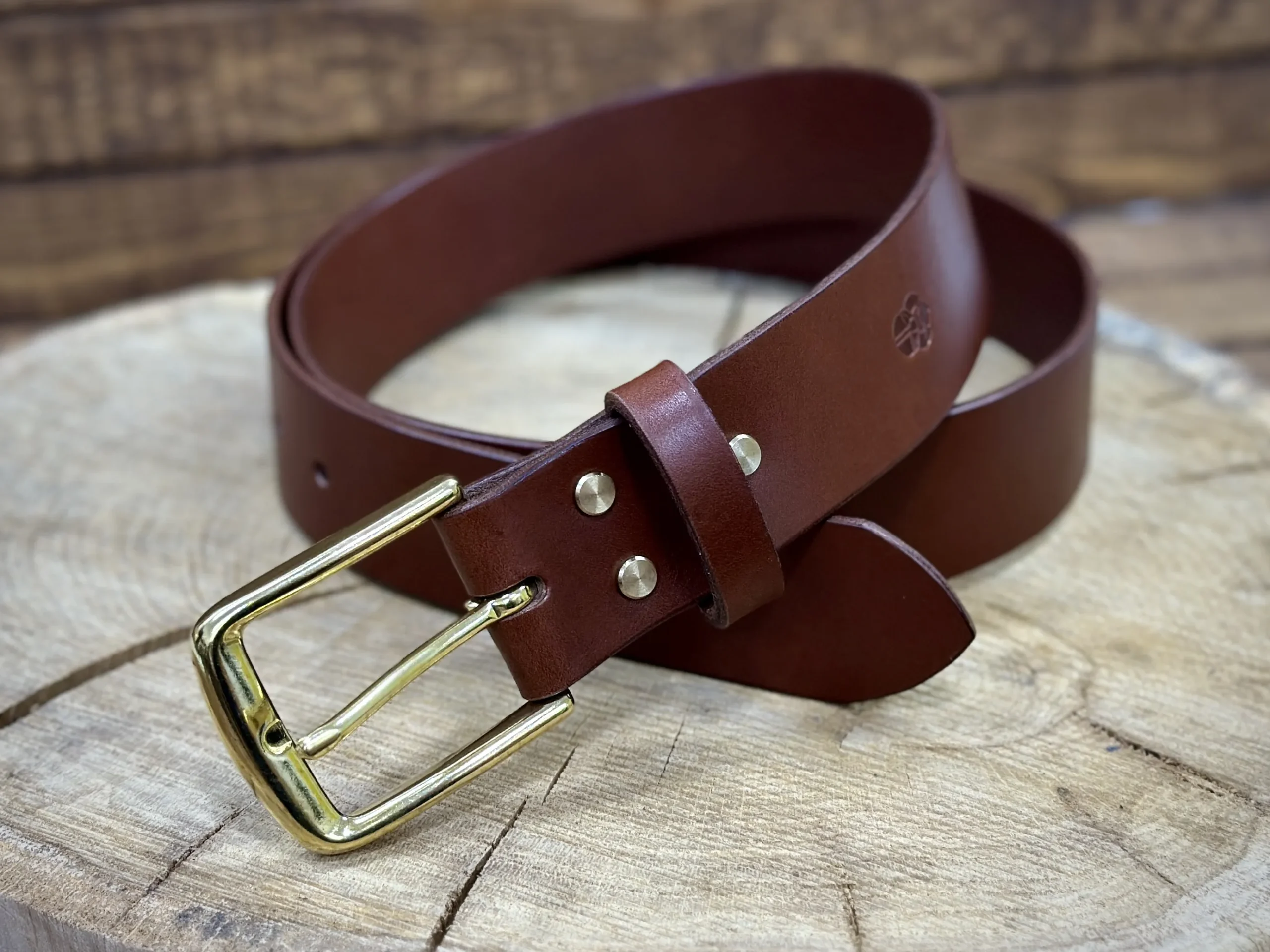 Ręcznie wykonany męski pasek do spodni ze skóry juchtowej