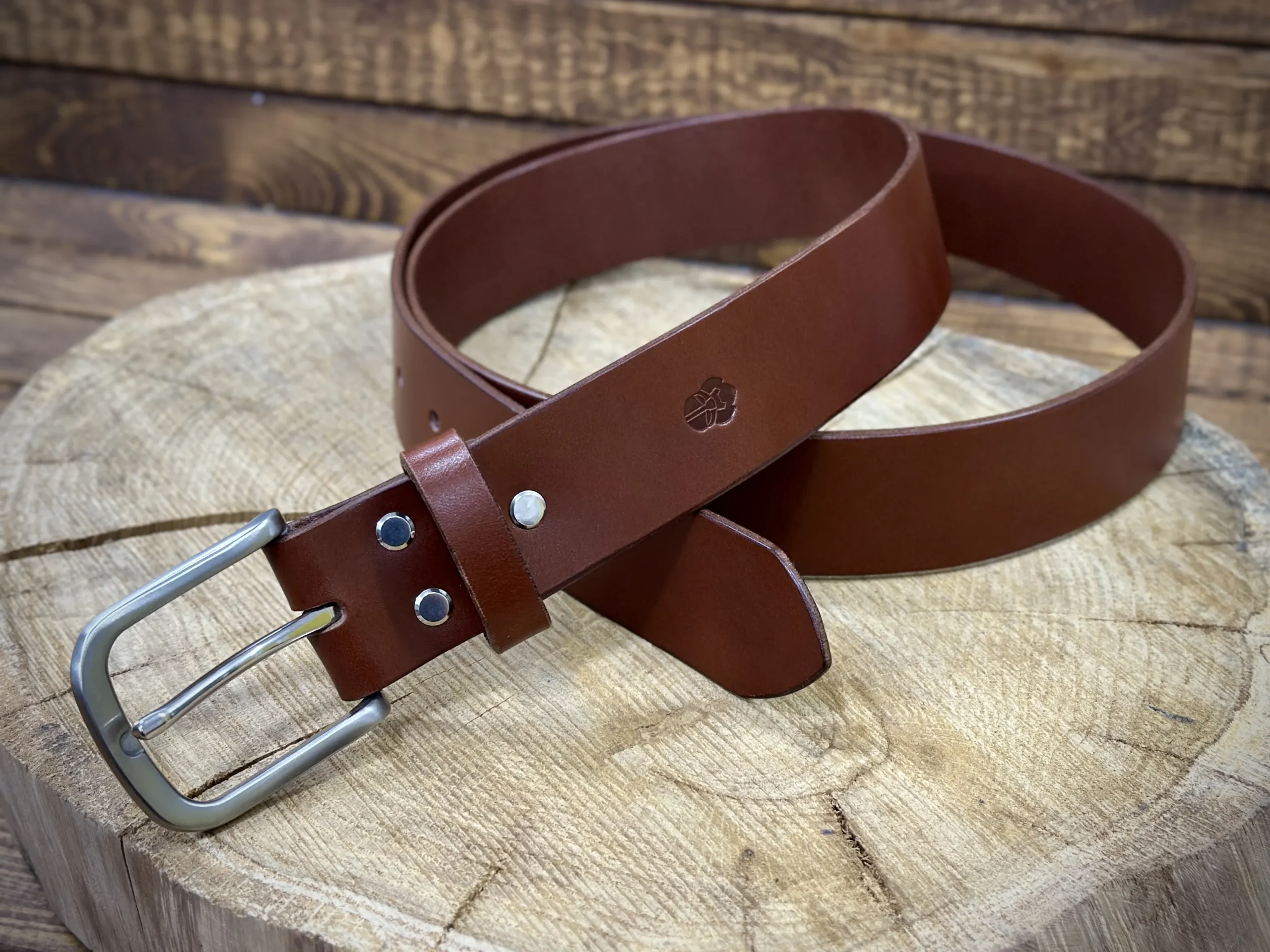 Ręcznie wykonany męski pasek do spodni ze skóry juchtowej.