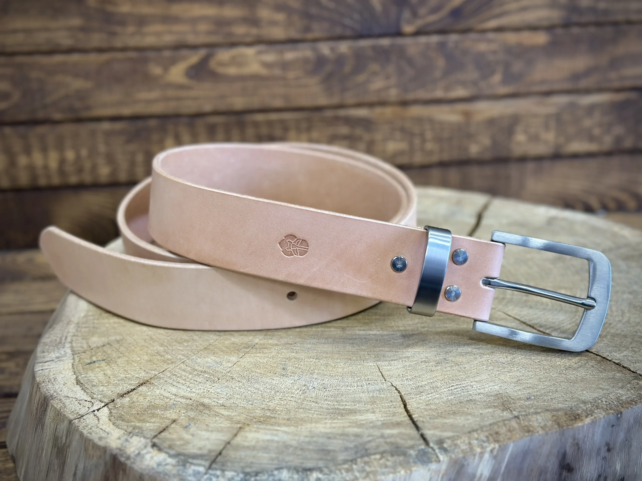 Pasek został ręcznie wykonany z wytrzymałej, garbowanej roślinnie skóry, pochodzącej z polskich garbarni.