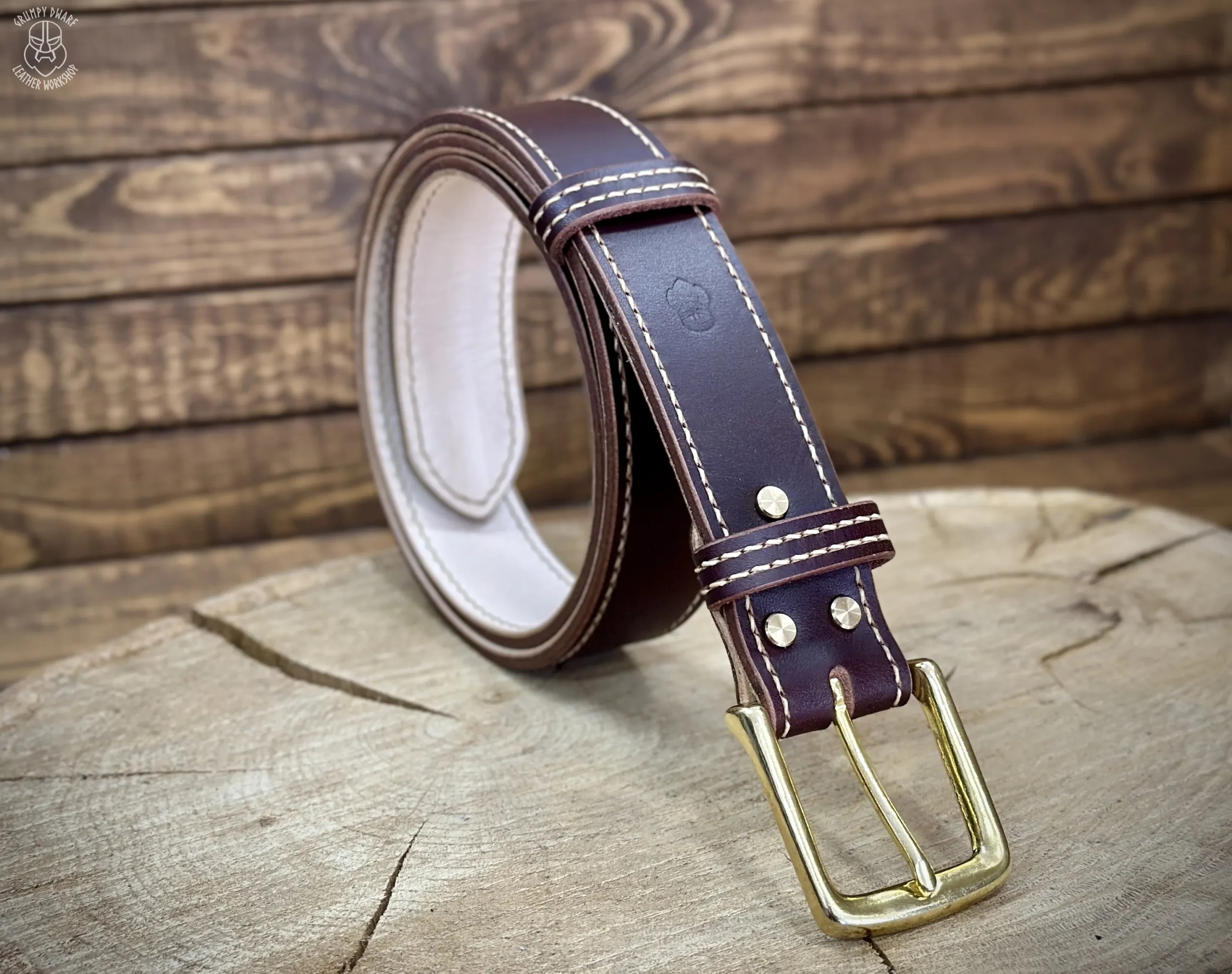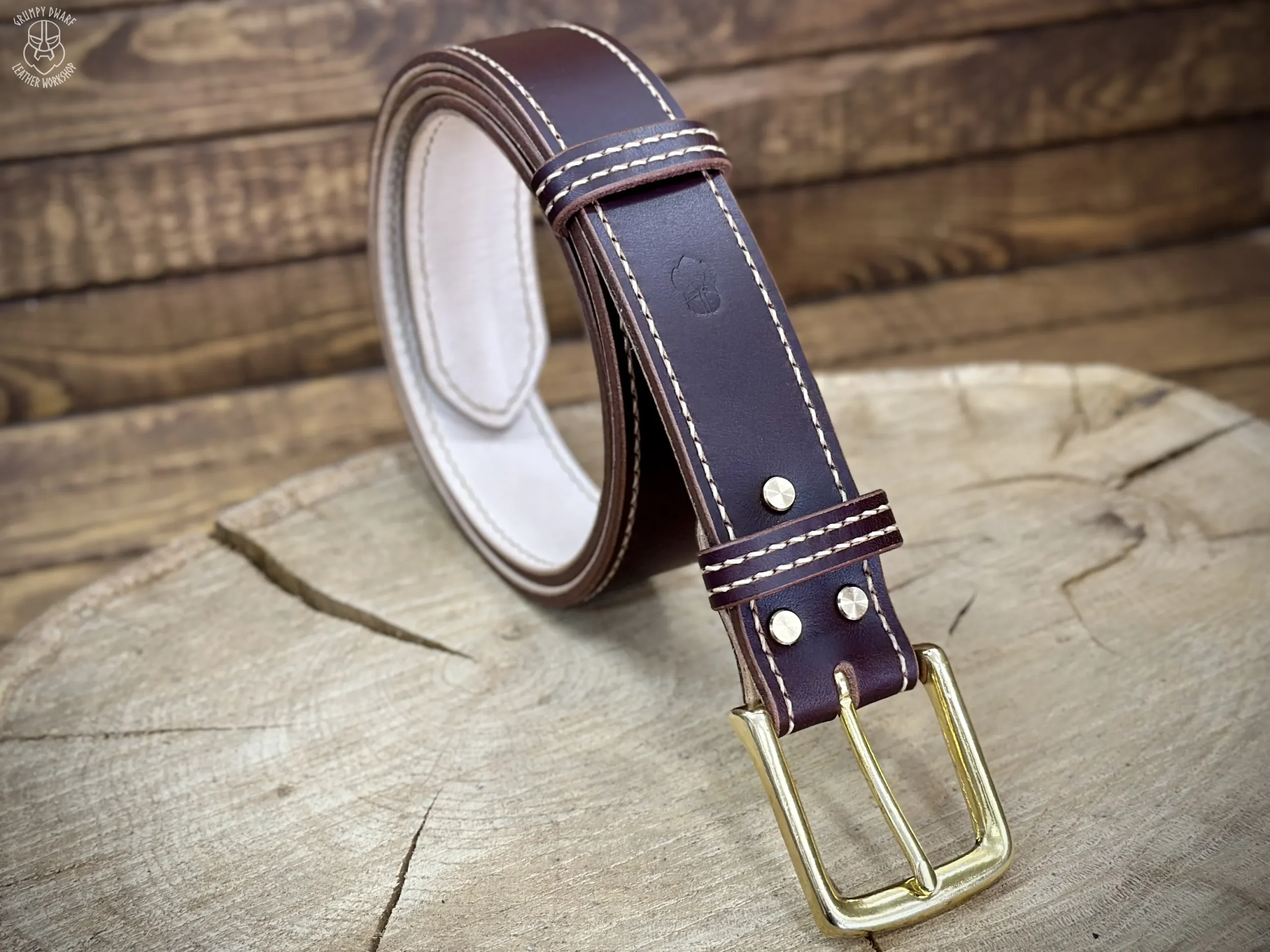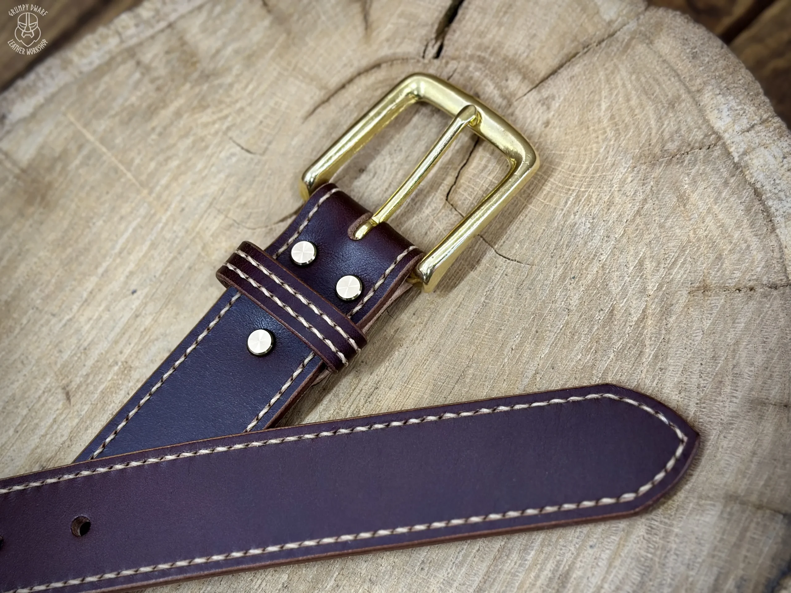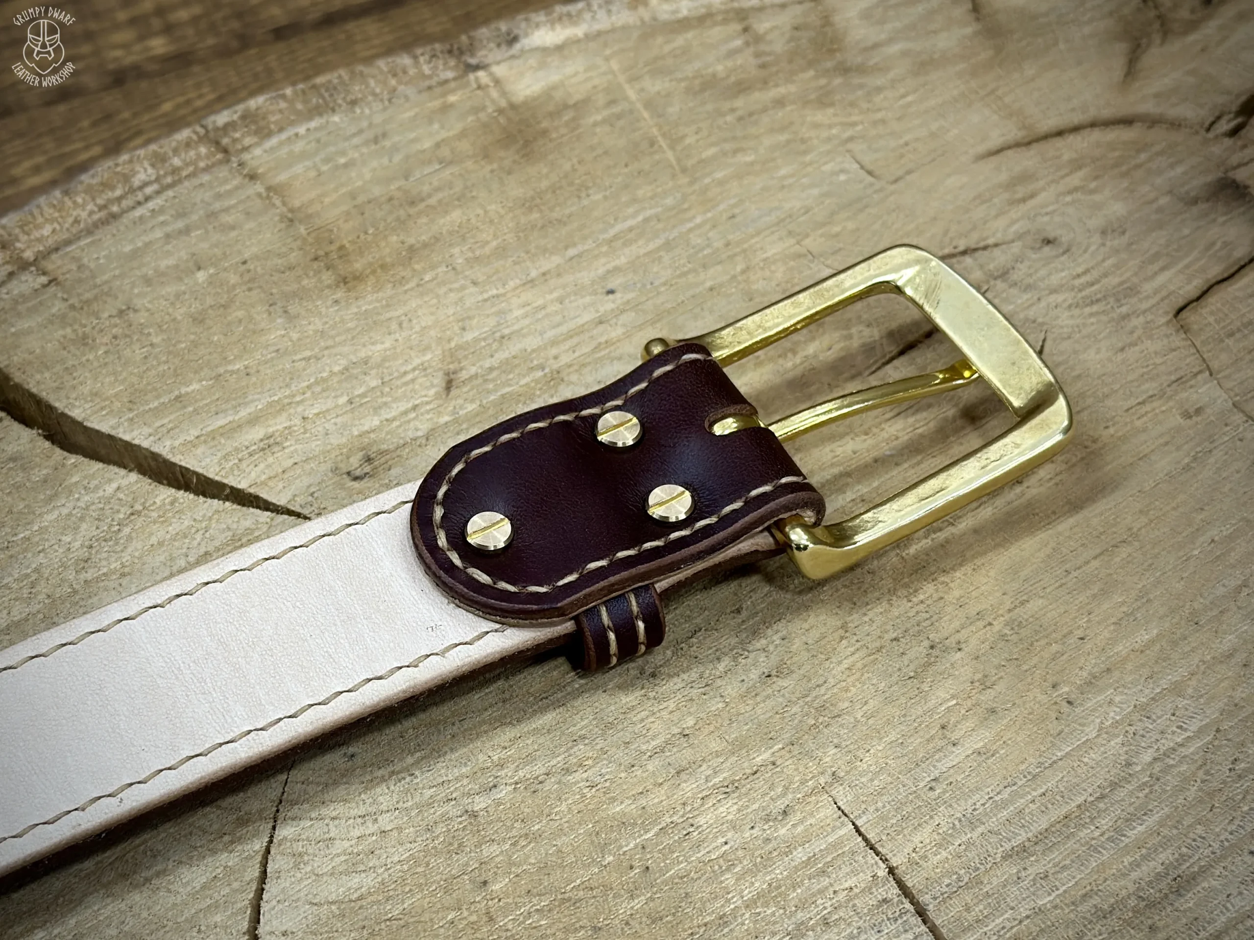 Podszewka paska została przyszyta ściegiem siodlarskim (saddle-stich), co zapewnia szwom o wiele większą trwałość w porównaniu do szycia maszynowego.