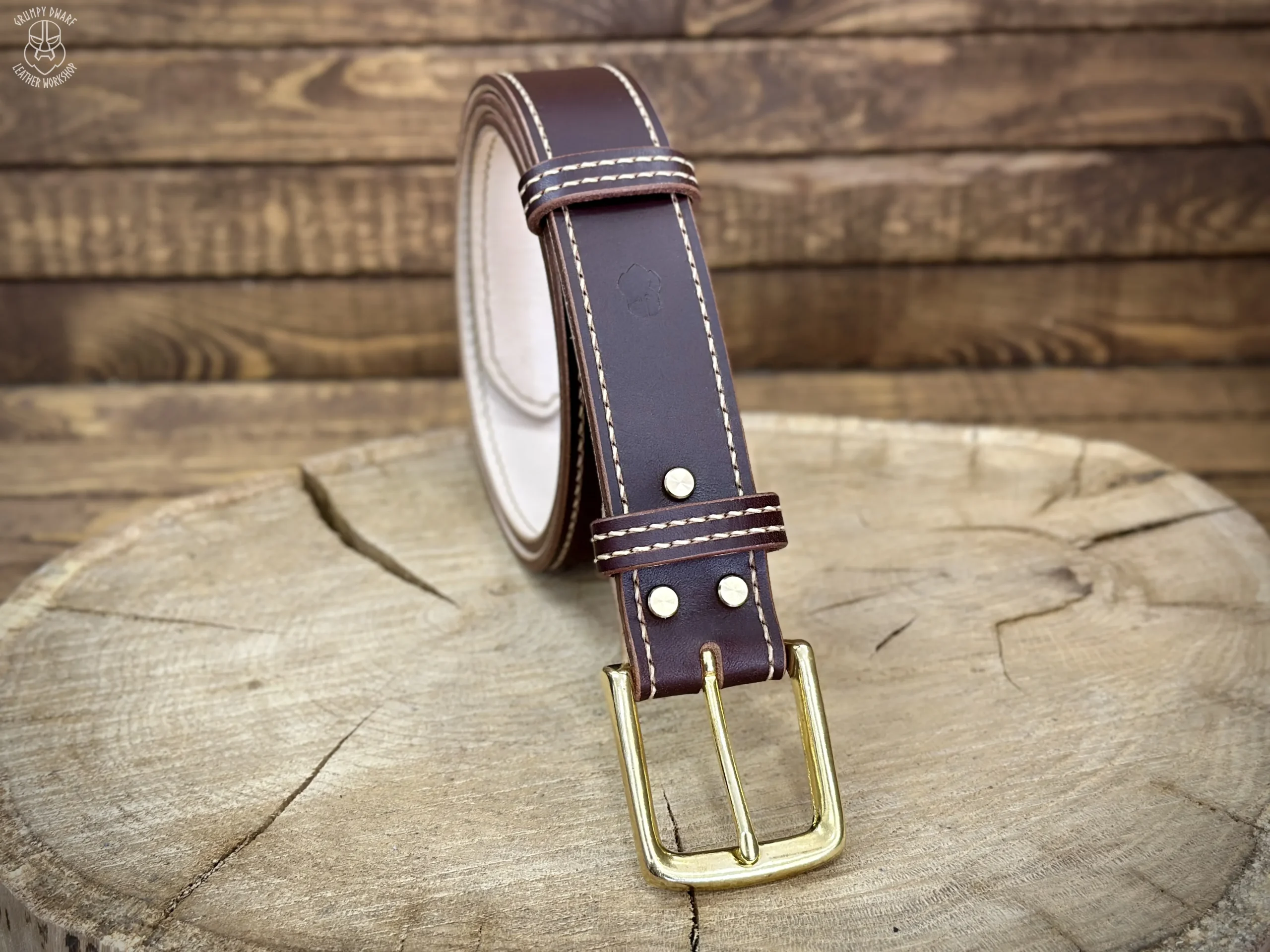 Pasek został ręcznie wykonany z wytrzymałej, garbowanej roślinnie skóry, pochodzącej z polskich i włoskich garbarni.