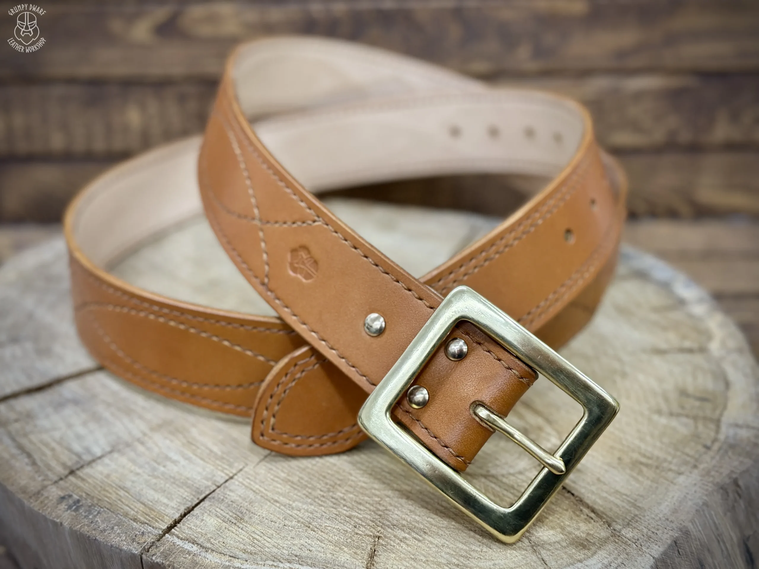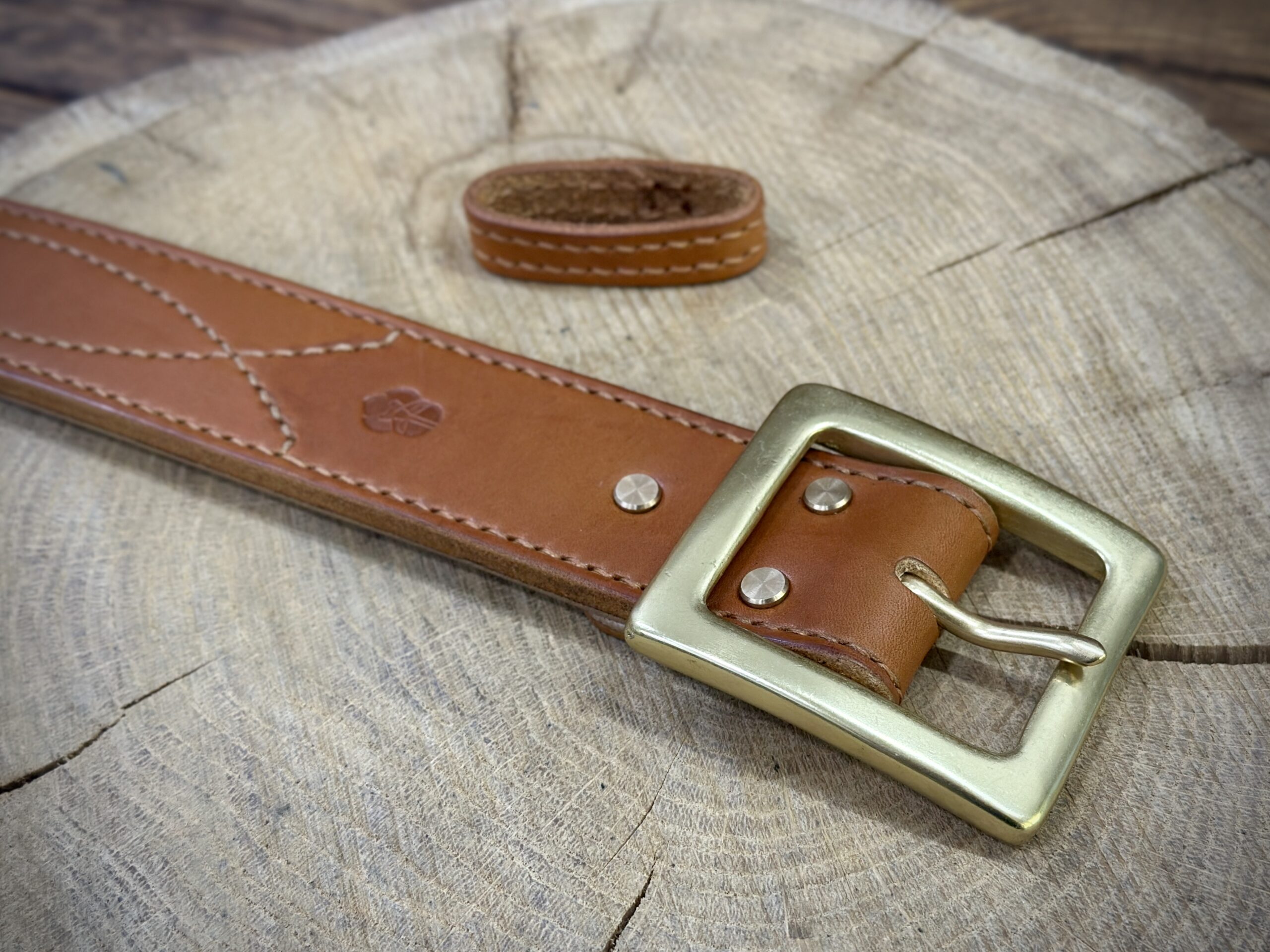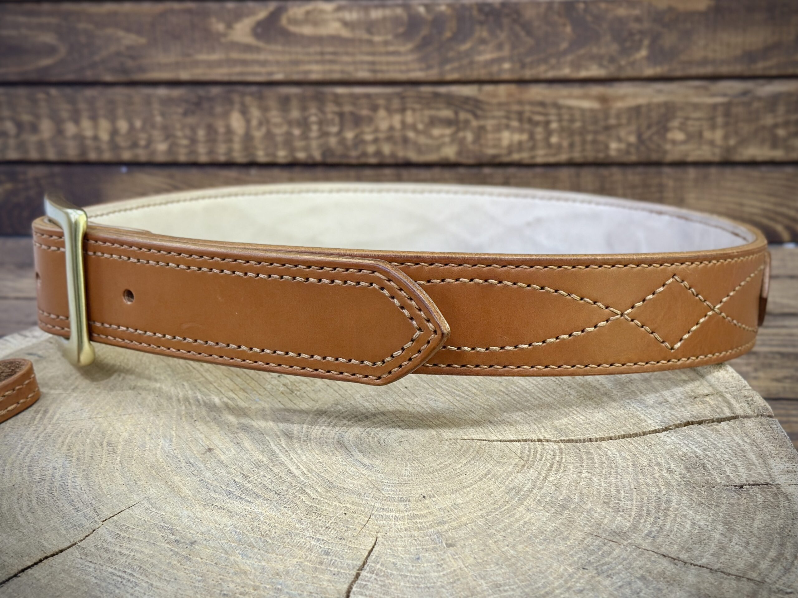 Podszewka paska jak i przeszycia zostały wykonane ściegiem siodlarskim (saddle-stich), co zapewnia szwom o wiele większą trwałość w porównaniu do szycia maszynowego.