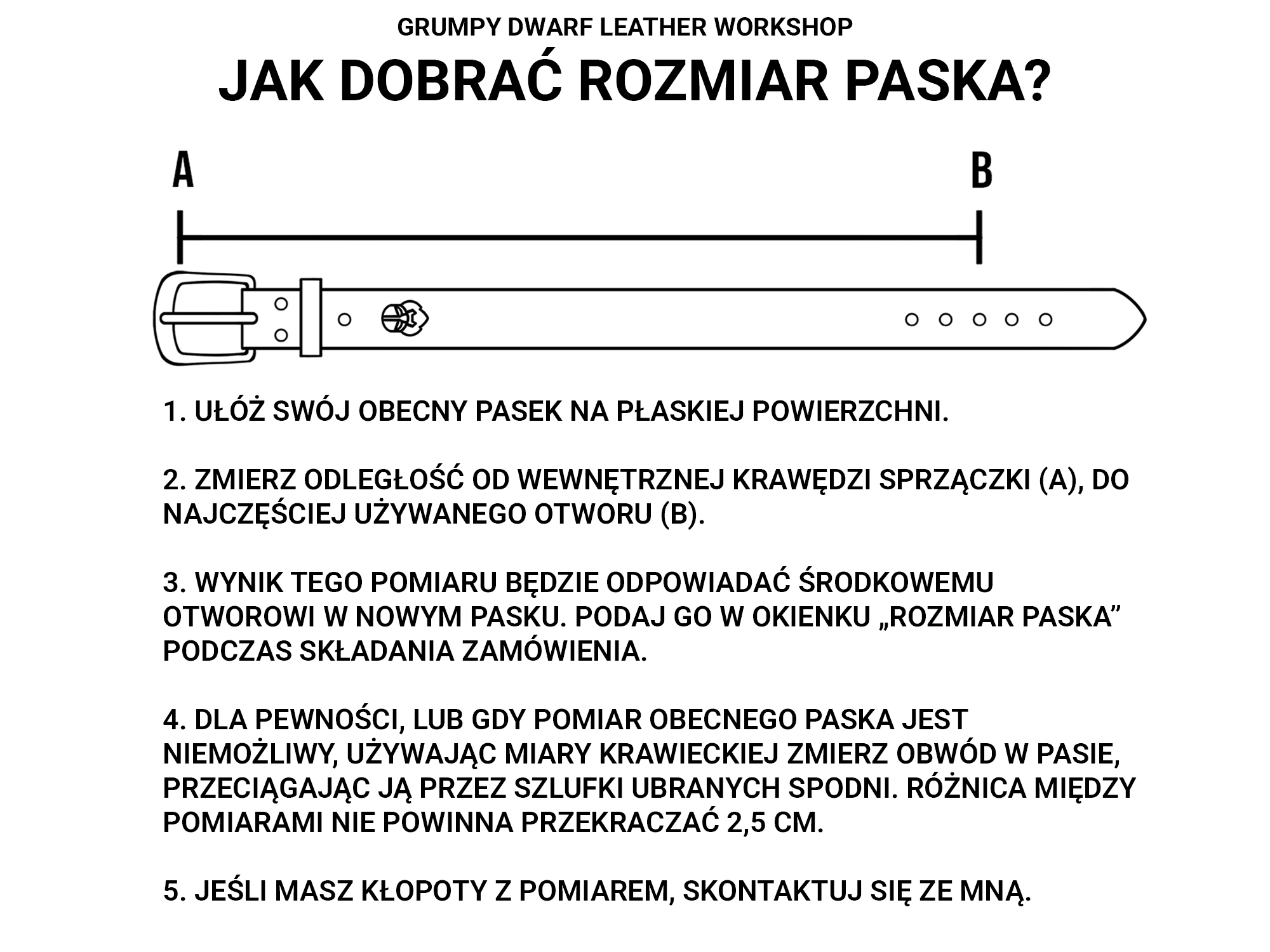2. Zmierz odległość od wewnętrznej krawędzi sprzączki (A), do najczęściej używanego otworu (B).