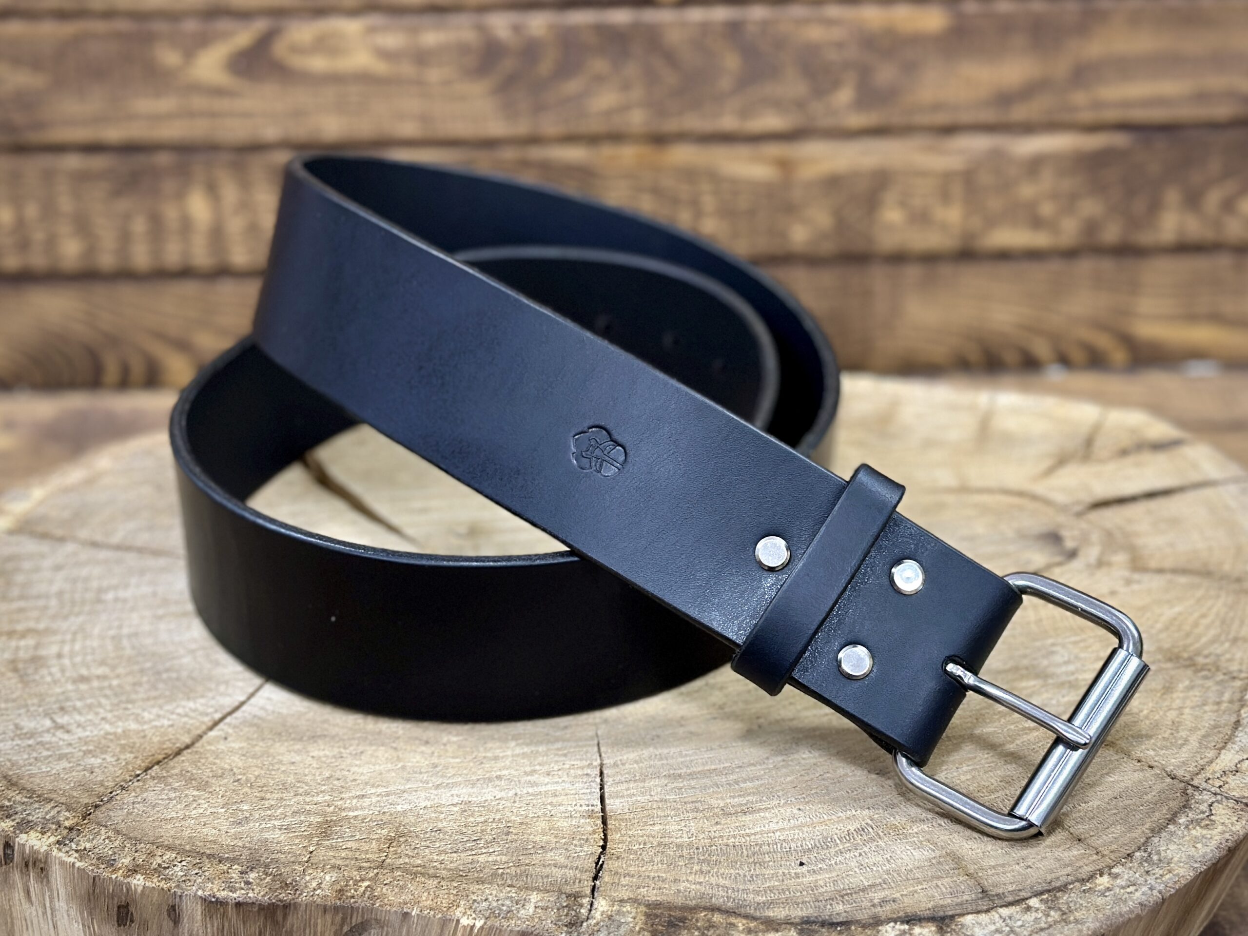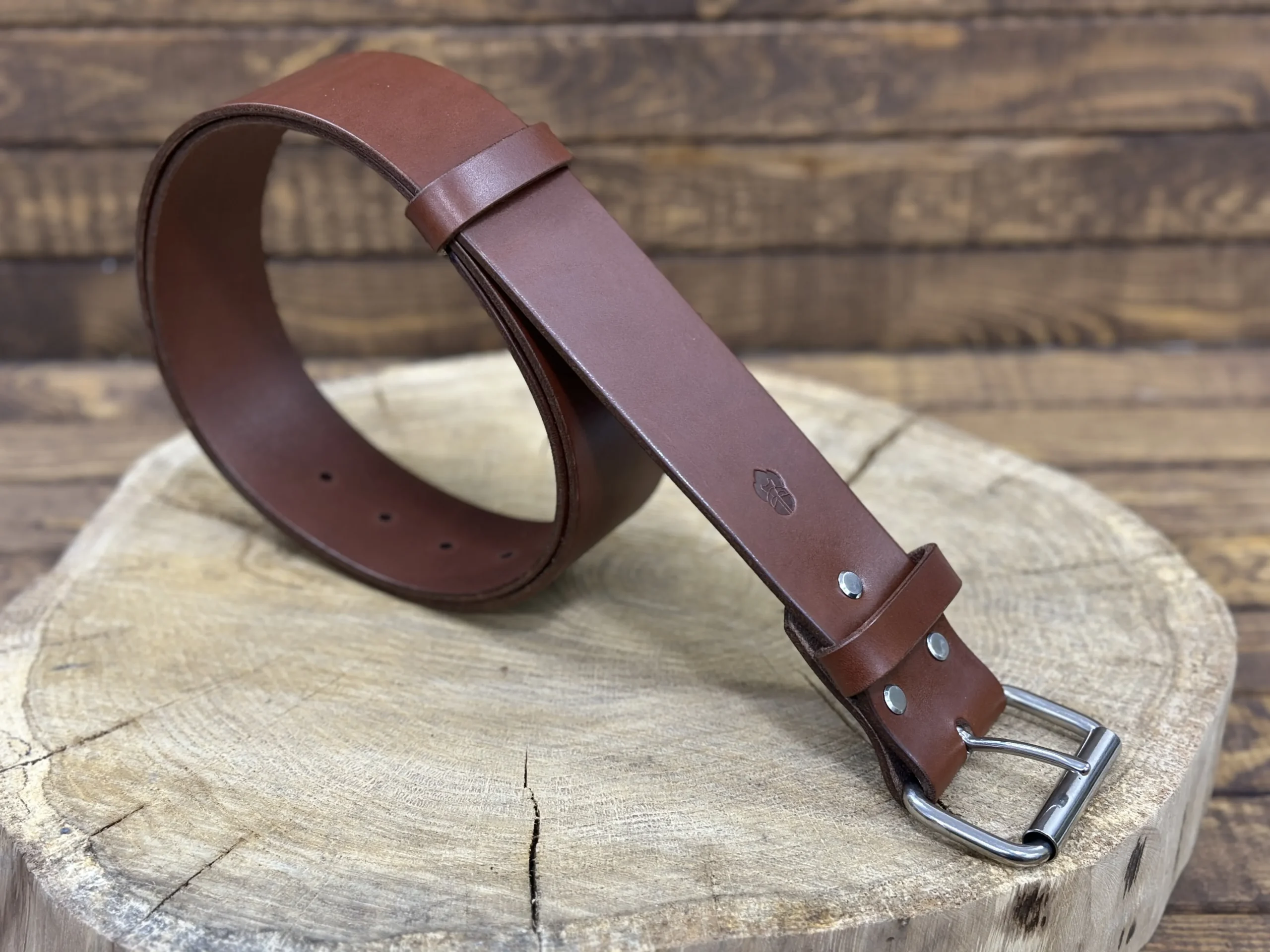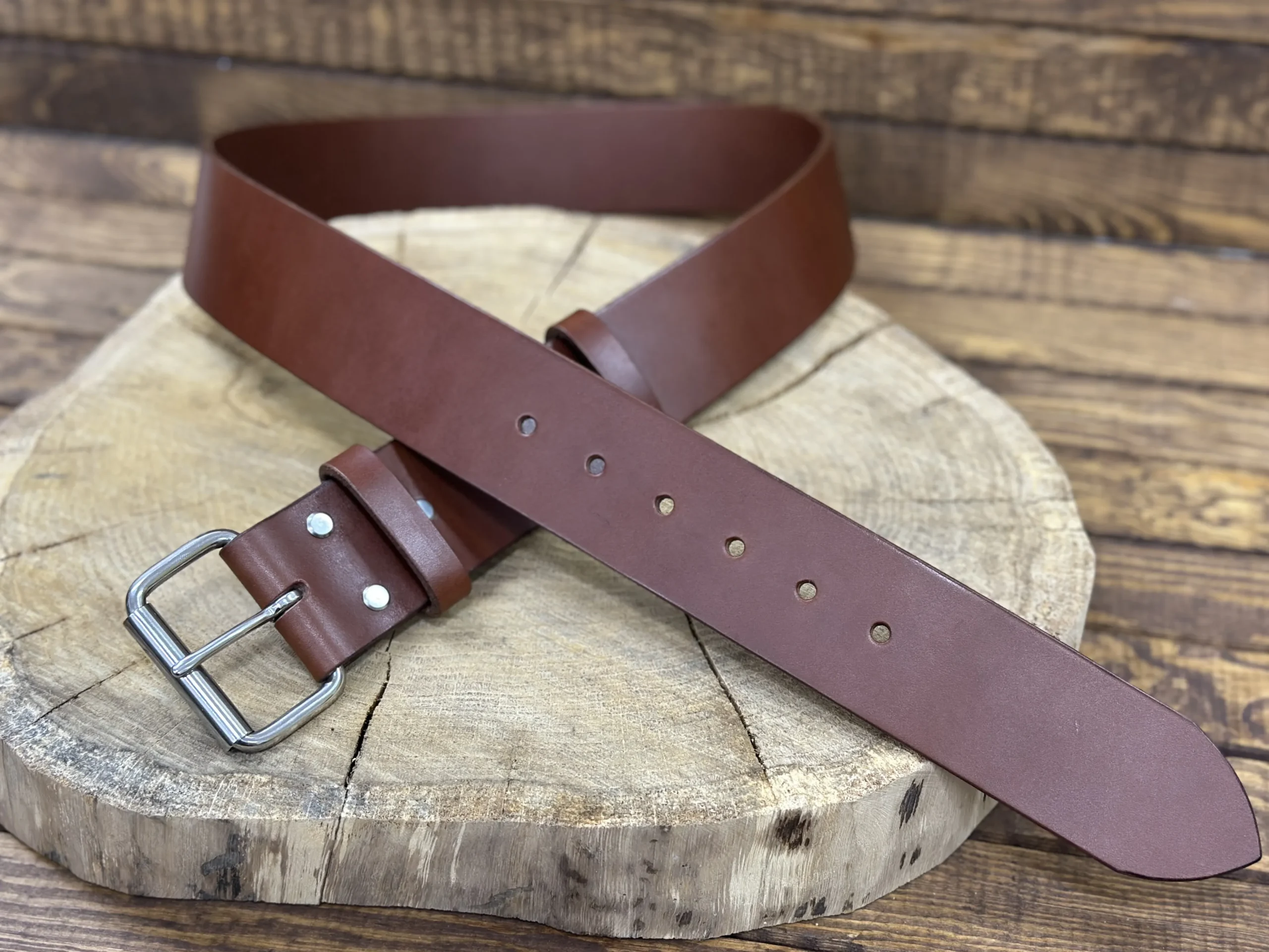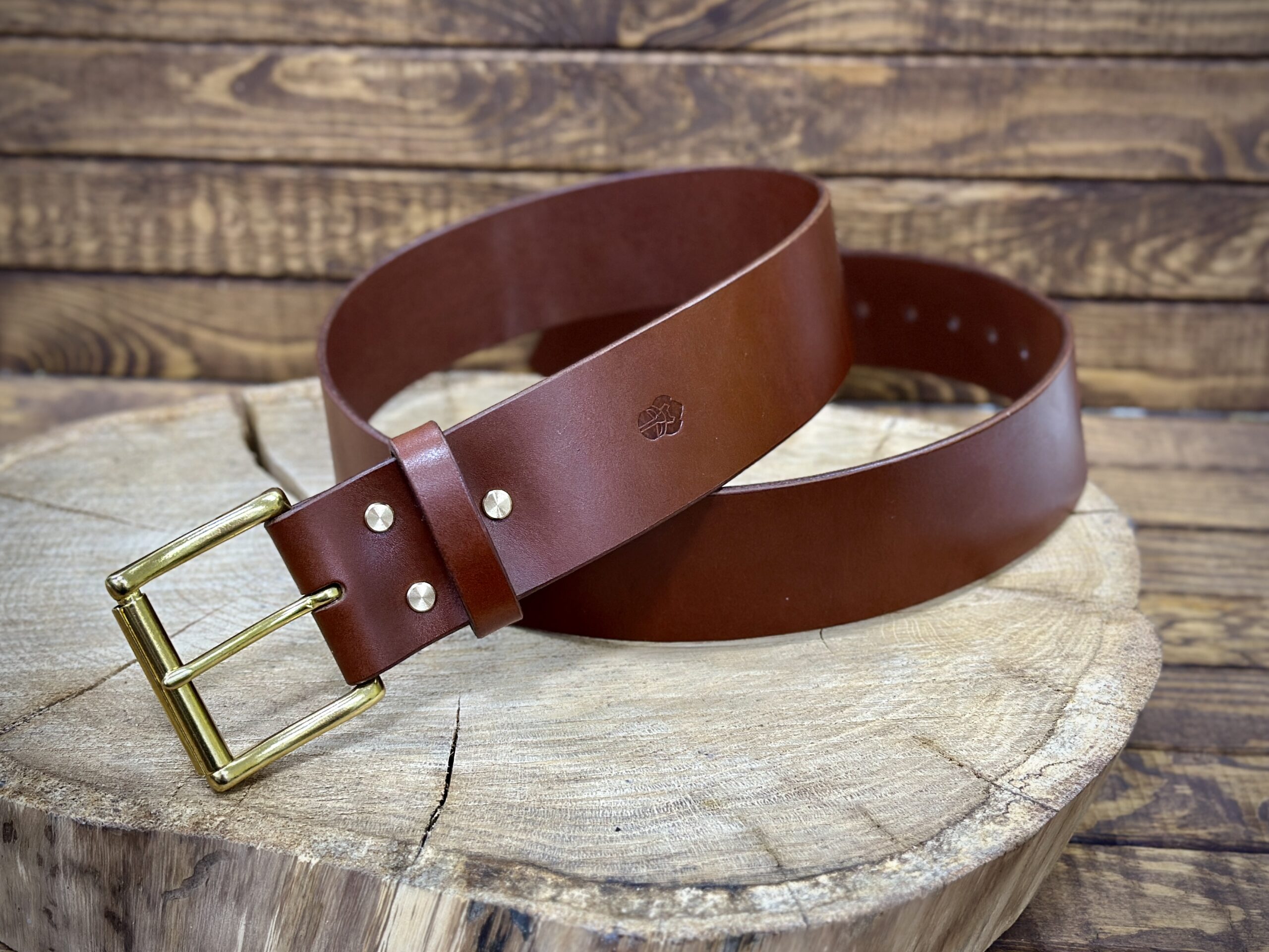 Ręcznie wykonany męski pasek do spodni ze skóry juchtowej