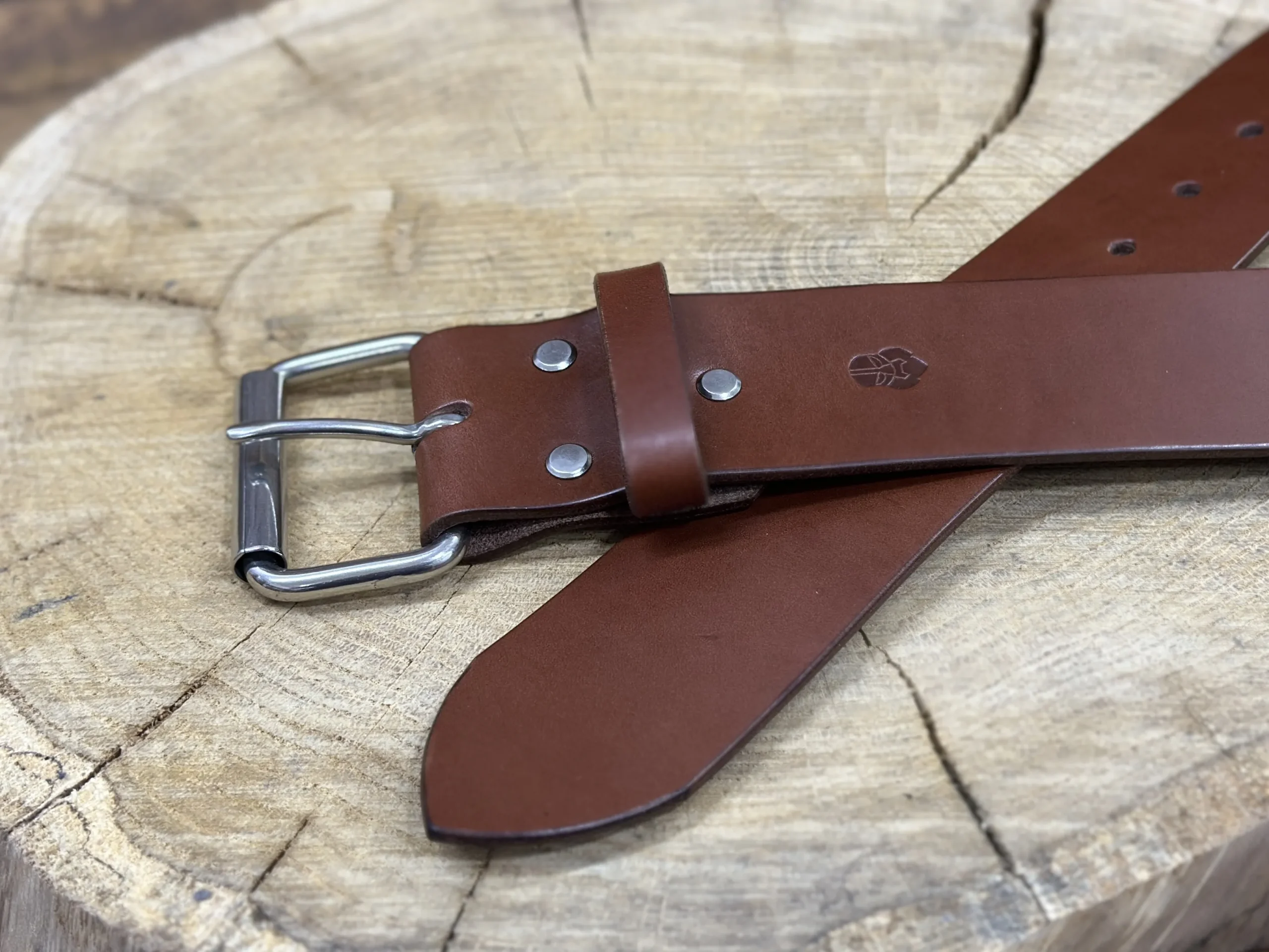 Pasek został ręcznie wykonany z wytrzymałej, garbowanej roślinnie skóry, pochodzącej z polskich garbarni.